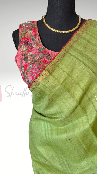 Tussar pure silk Evergreen color Embroidered Readymade Blouse with Ready to Ship Online USA