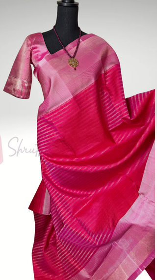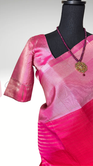 Pink dual shade color Gadwal handwoven silk saree with stitched blouse online