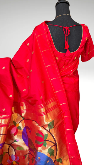 Red Paithani silk saree online usa paithani sarees single muniya comes with stitched blouse