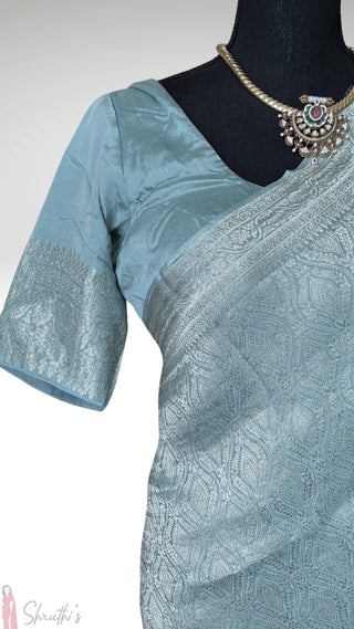 Teal Tissue Zari Kota Silver zari Readymade Blouse with Ready to Ship Online USA
