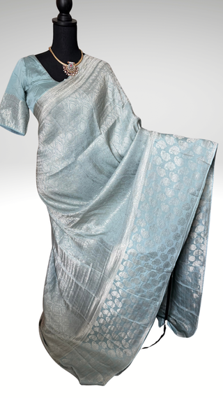 Pastel tissue crushed silk saree with embroidered blouse easy drape online shopping usa