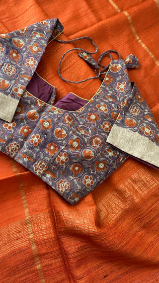 Printed TussarPure silk perfectly lined Ready Made Blouse (Sizes 36–44) Elegant Blouse