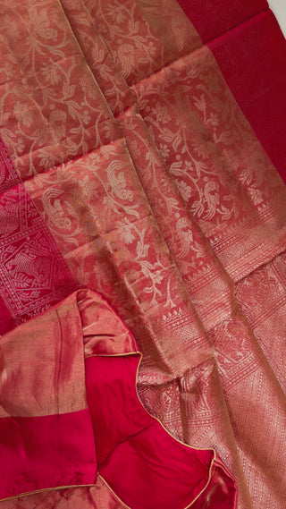 Pure Tissue Pink beneras organza saree stitched blouse saree readymade online USA