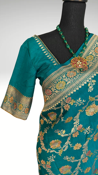 Benerasi Tussar Georgette Katan silk saree online shopping with prestitched blouse