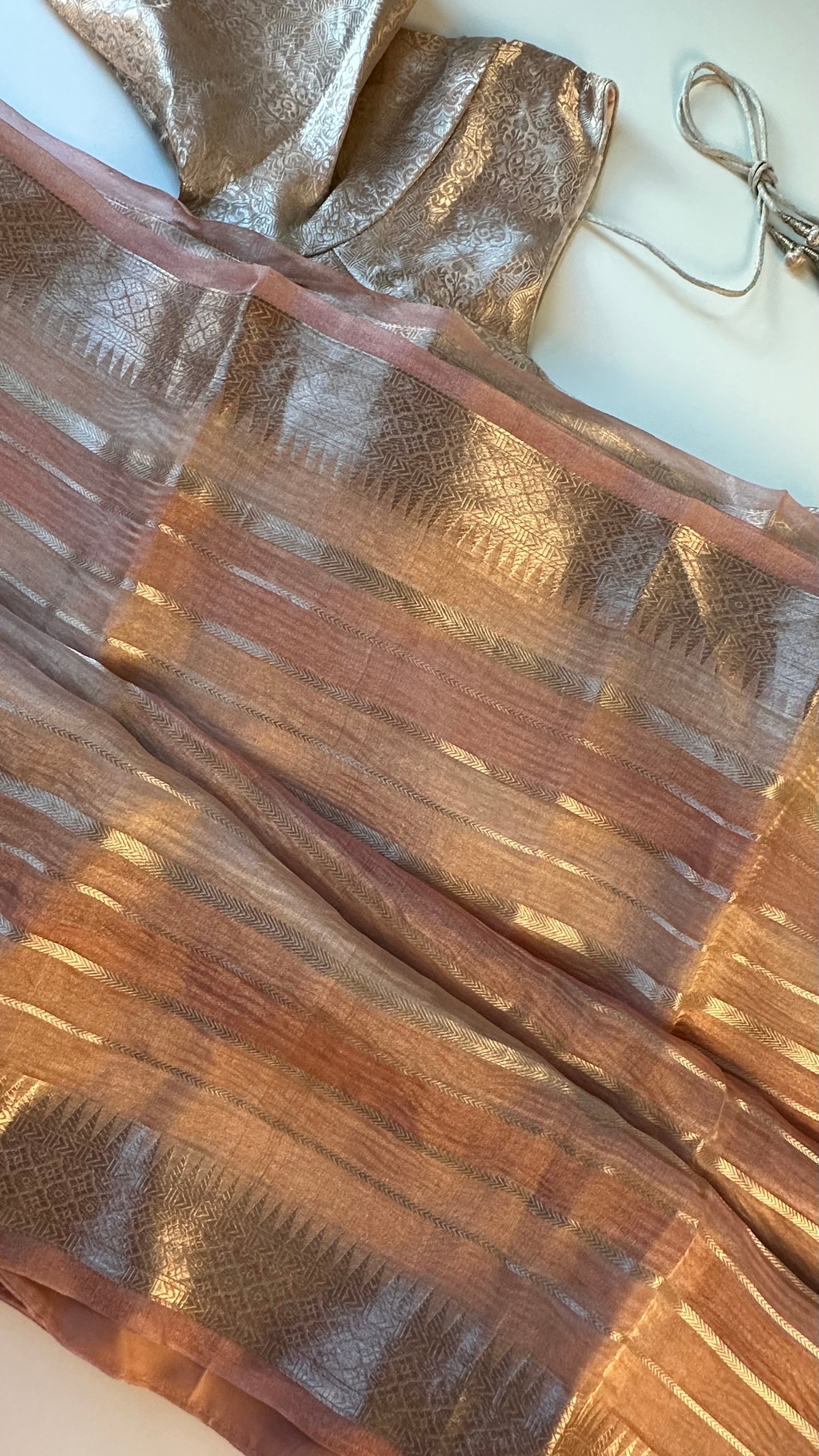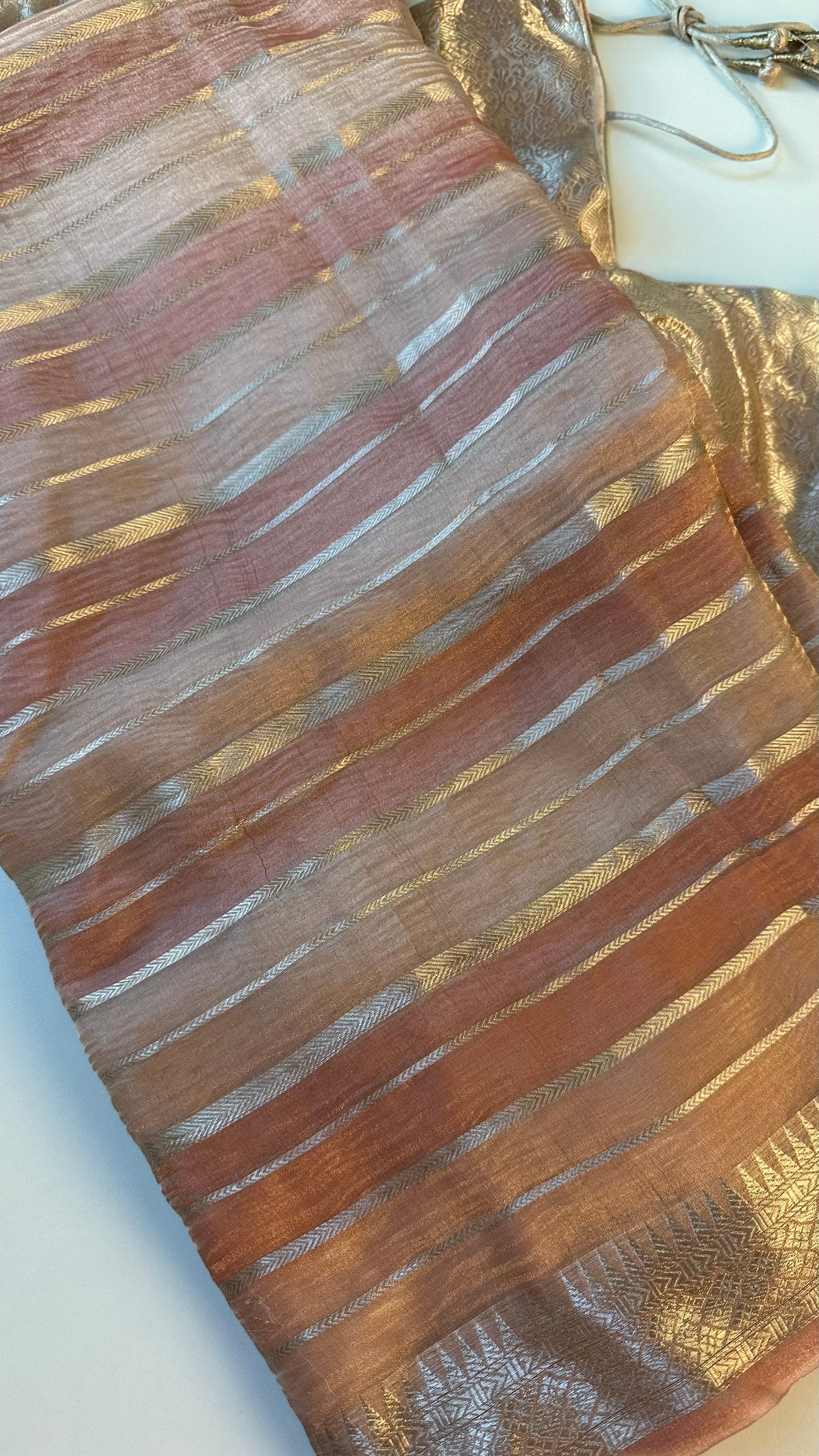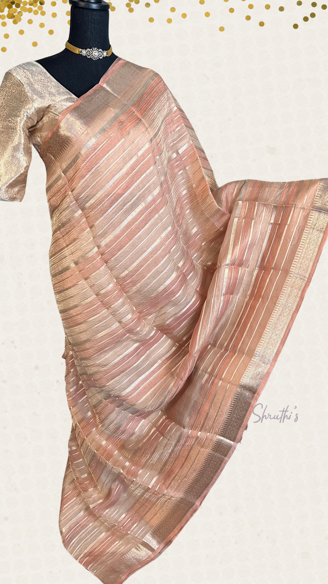 comes with fully stitched blouses Indulge in elegance with our handwoven Pure Tissue silk saree. Its fine weave and soft texture make it easy to drape. The rich color is complemented by intricate pure zari work, and it comes with a stitched blouse for a well-made look. Available online. Tissue Organza with blouse online shopping usa