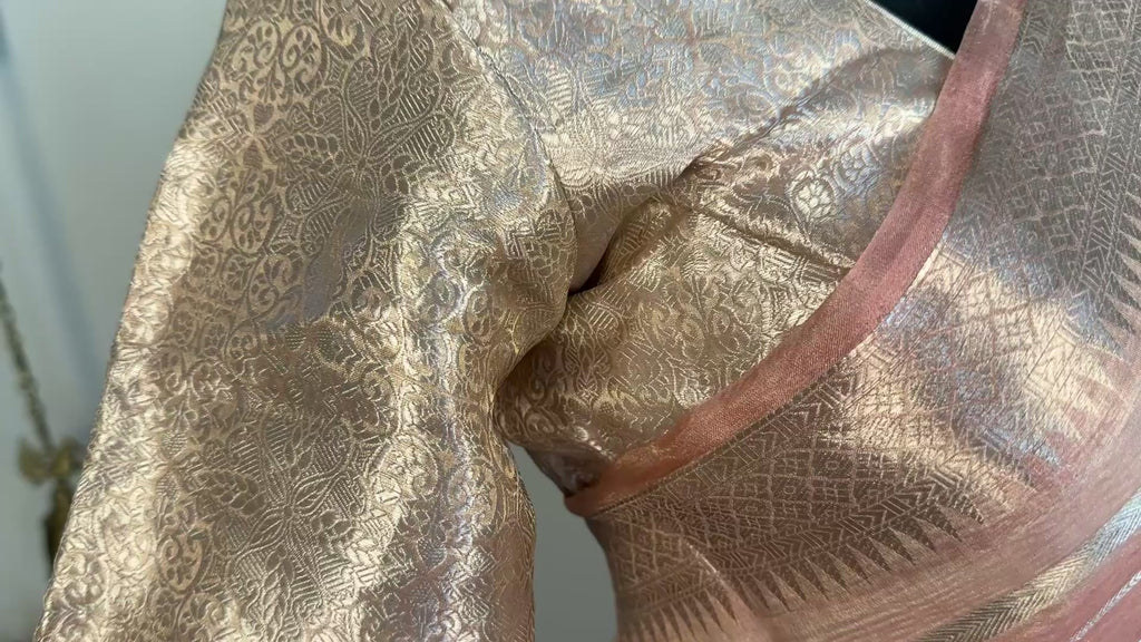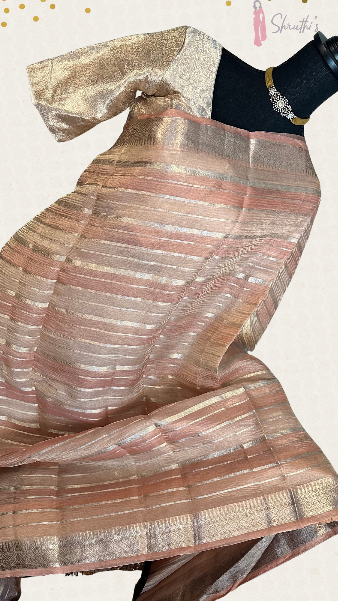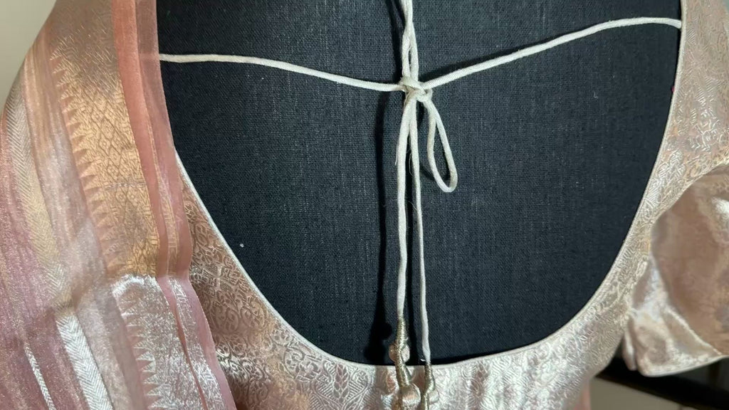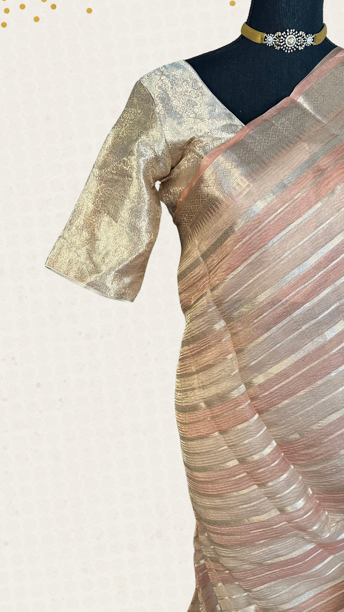 Pure Tissue Pink beneras organza saree stitched blouse saree readymade online USA