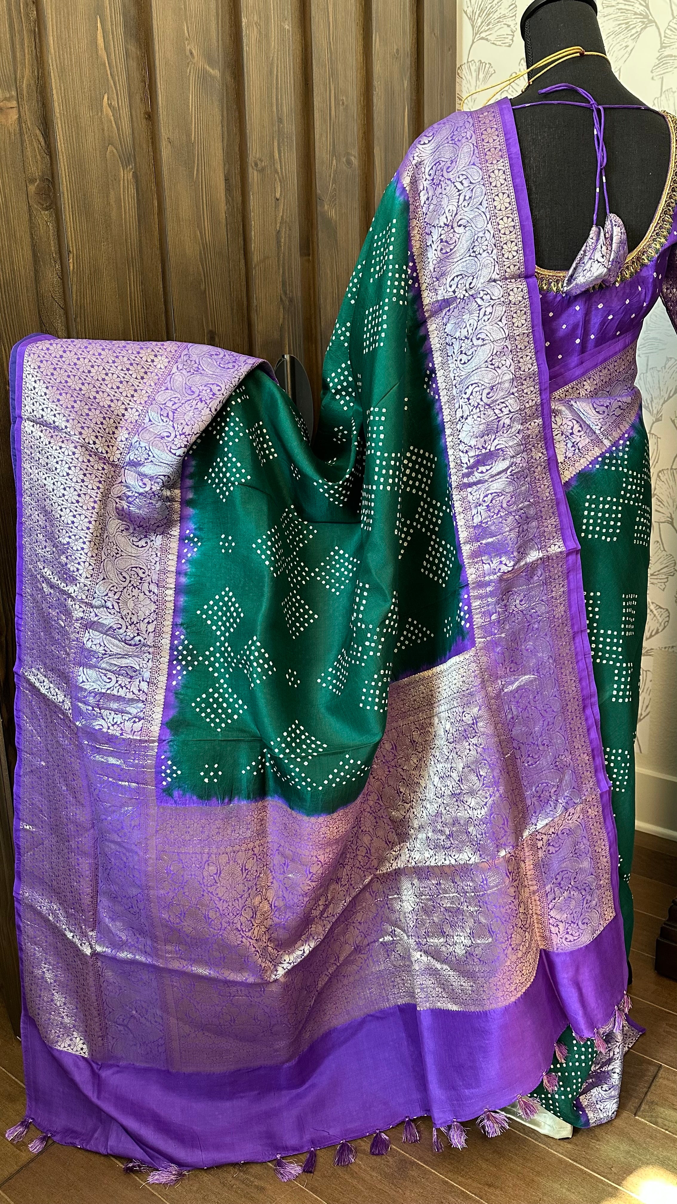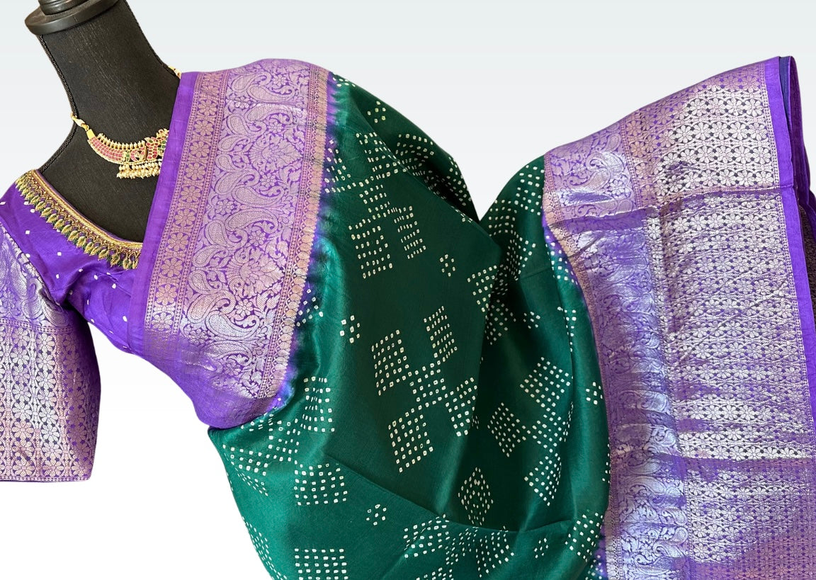 Bandhej silk saree handloomPure silk saree with stitched blouse