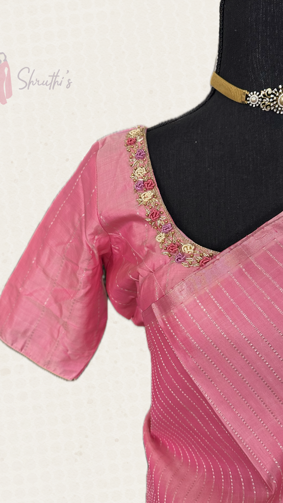 Saree with highest quality fabric zari, stitched blouses with hand embroidered designs( not all) . Well made blouses. Pico fall done Product ships free USPS priority mail.