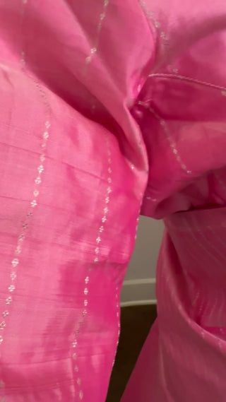 kanchi pattu saree features pure zari for a touch of elegance. The fine weave and easy drape make it a breeze to wear, while the stitched blouse adds a perfect finishing touch. With alterations available and video calls for assistance, this saree is a must-have for any occasion.Borderless  kanjivaram pattu saree with silver zari