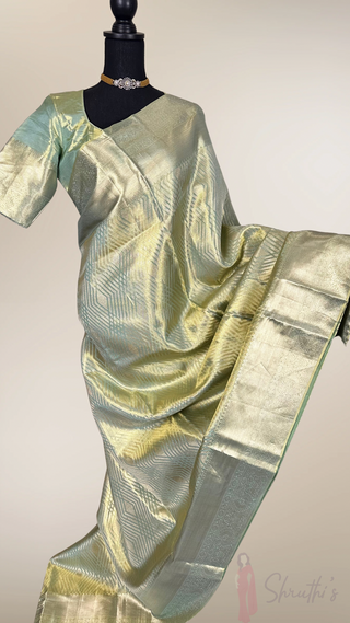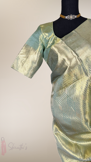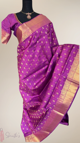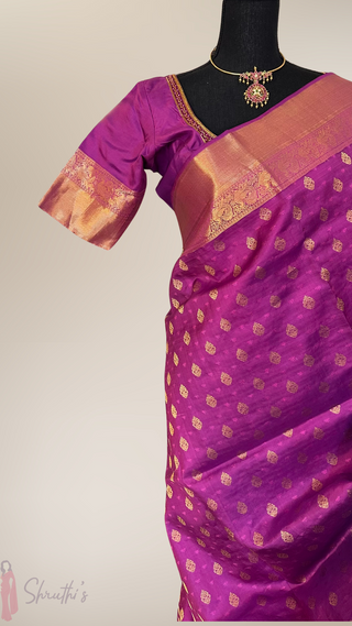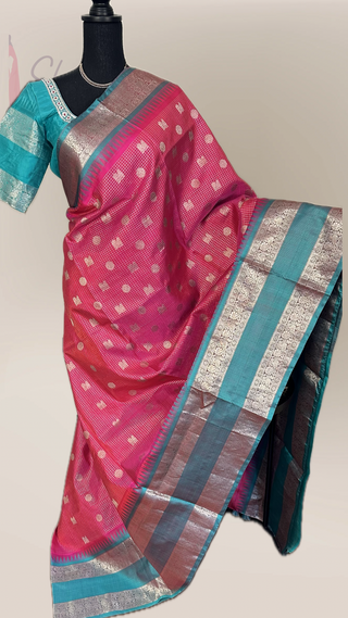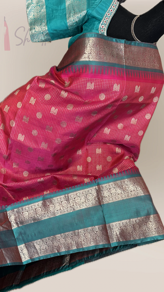 Venkatagiri pure double shade pink silk silver zari with stitched blouse contrast blouse