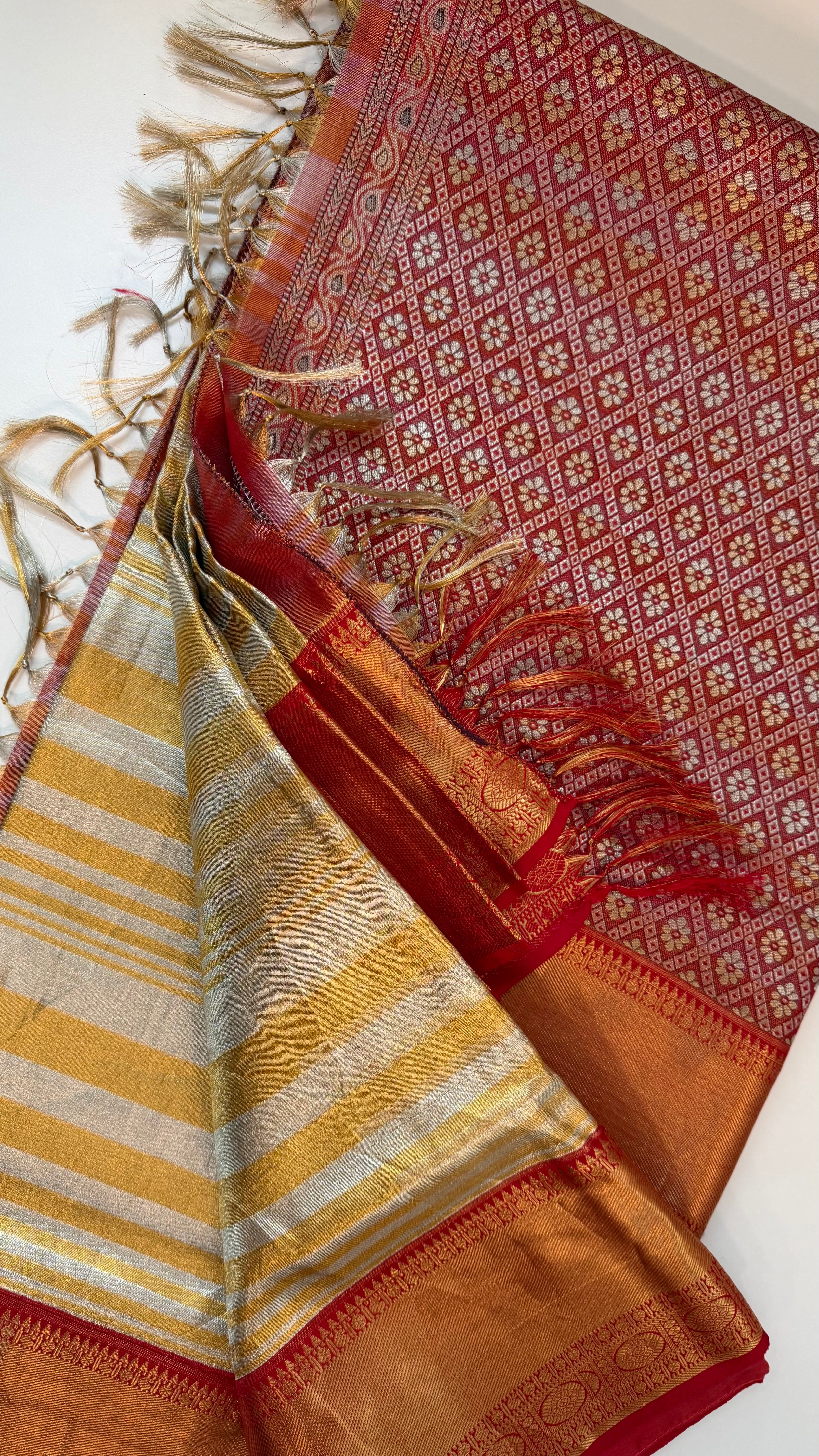 Handloom kanchi tissue gold  pattu saree  . Handwoven silk saree.