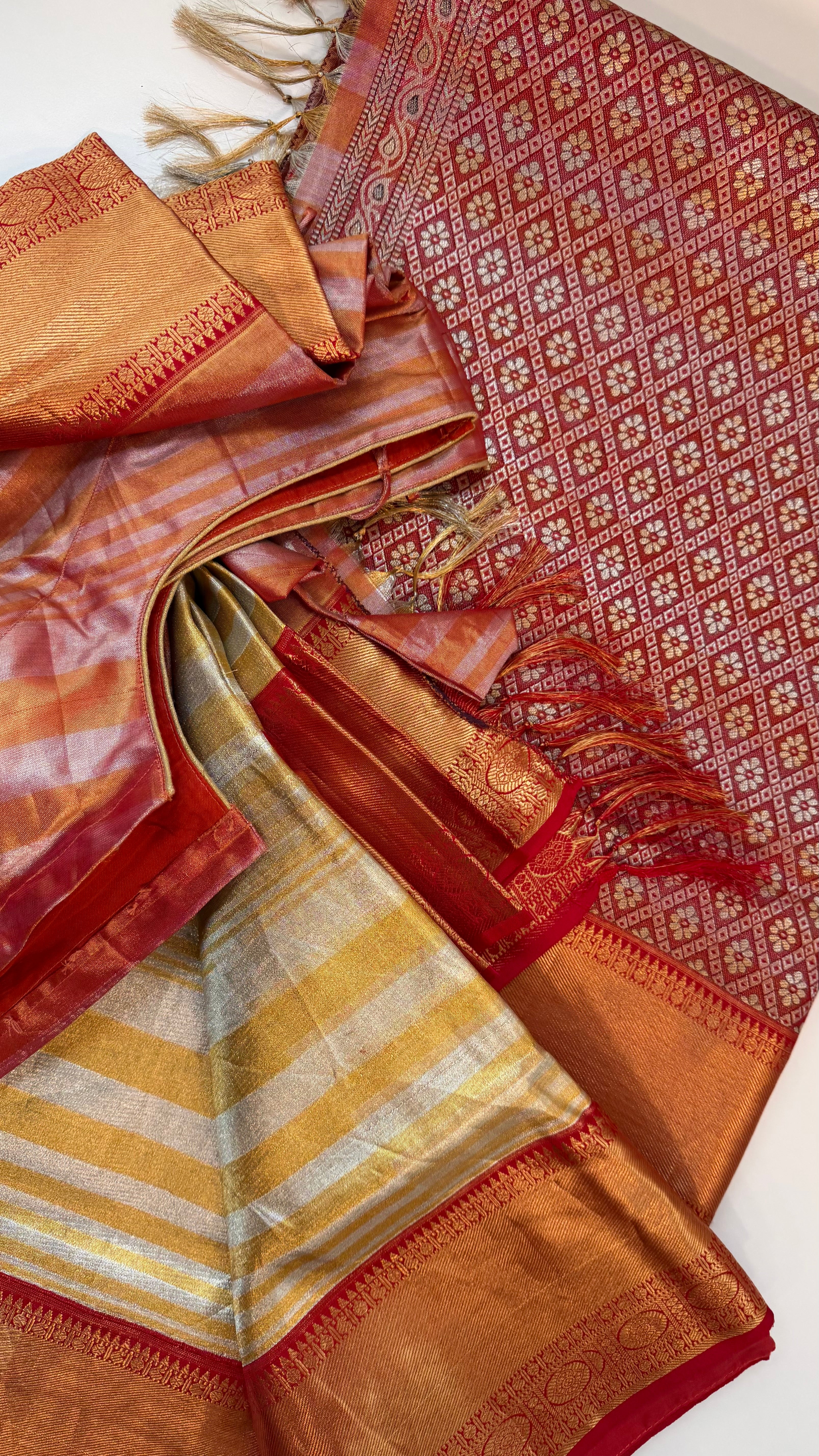 Fine weave kanjivaram zari with stitched  blouse saree,Bridal tissue kanchi pattu saree online muhurtham saree online.