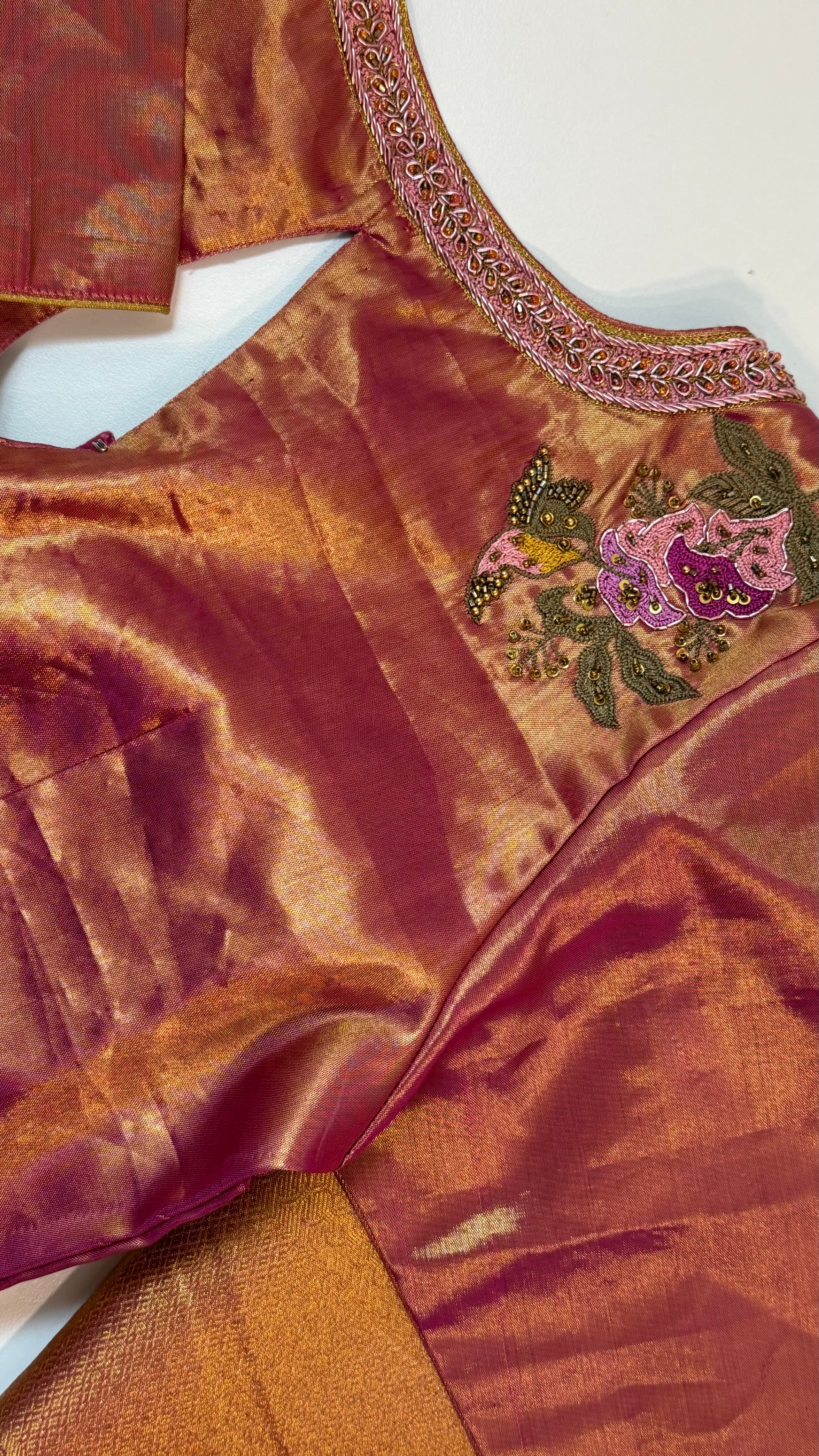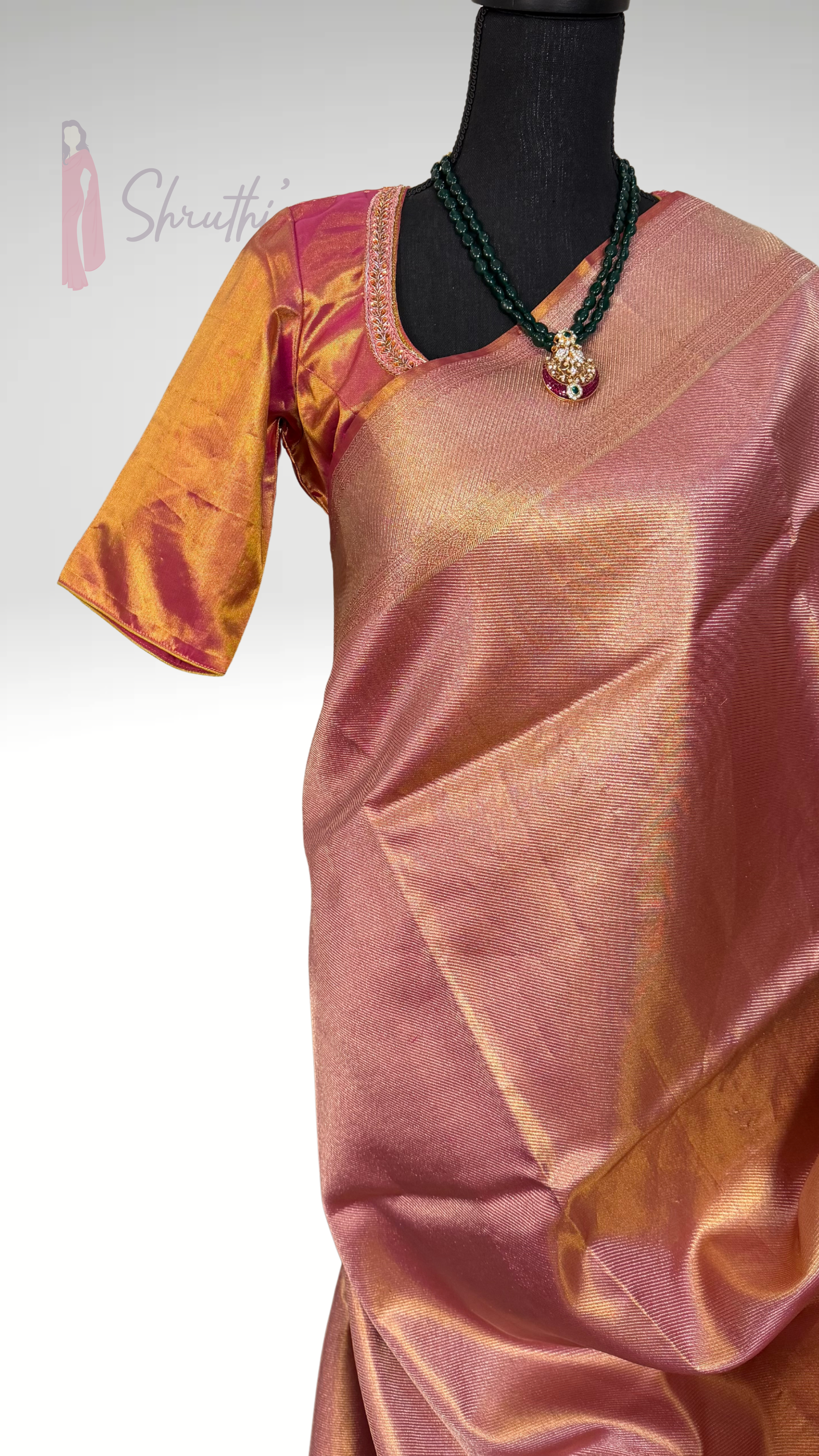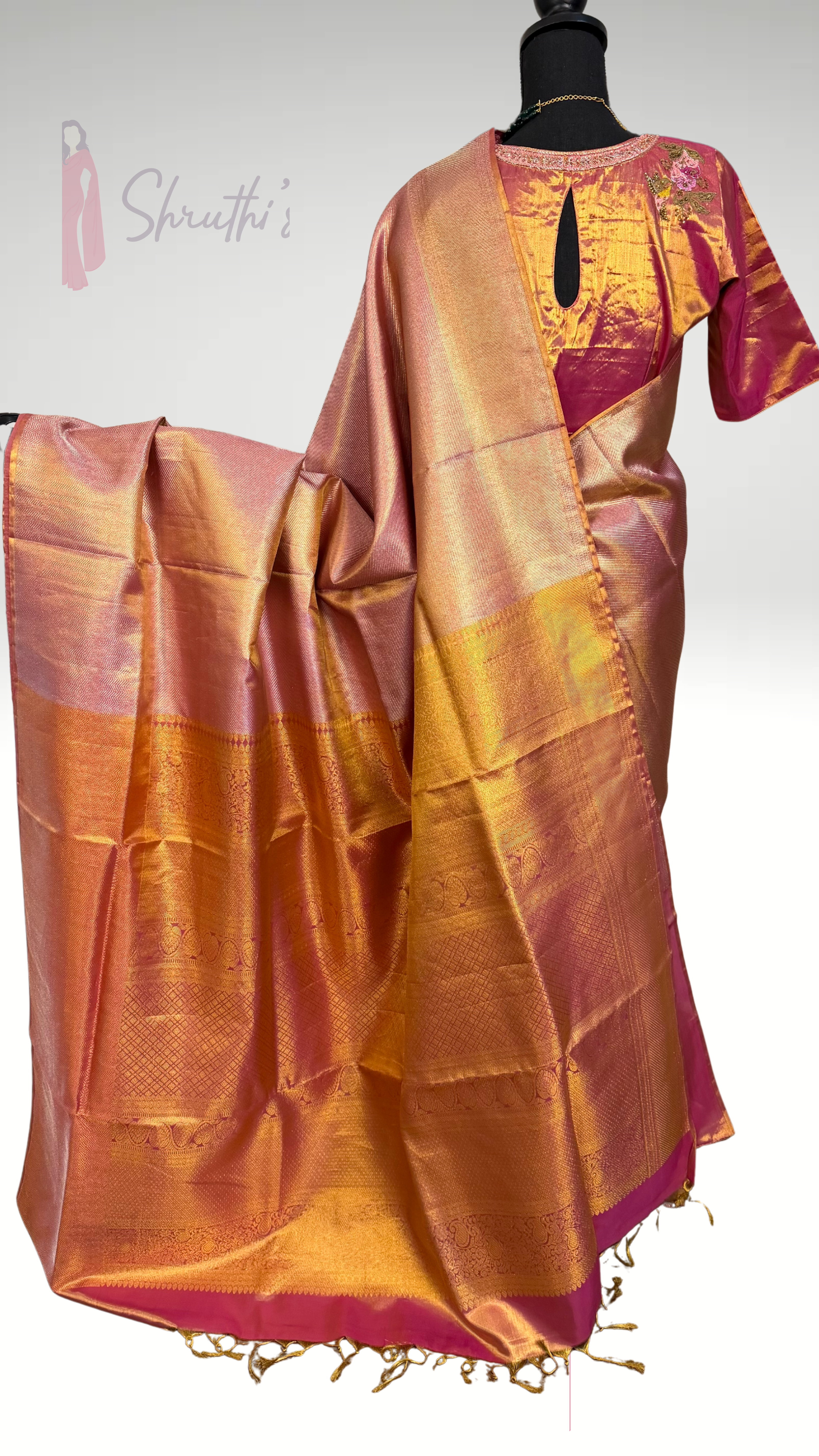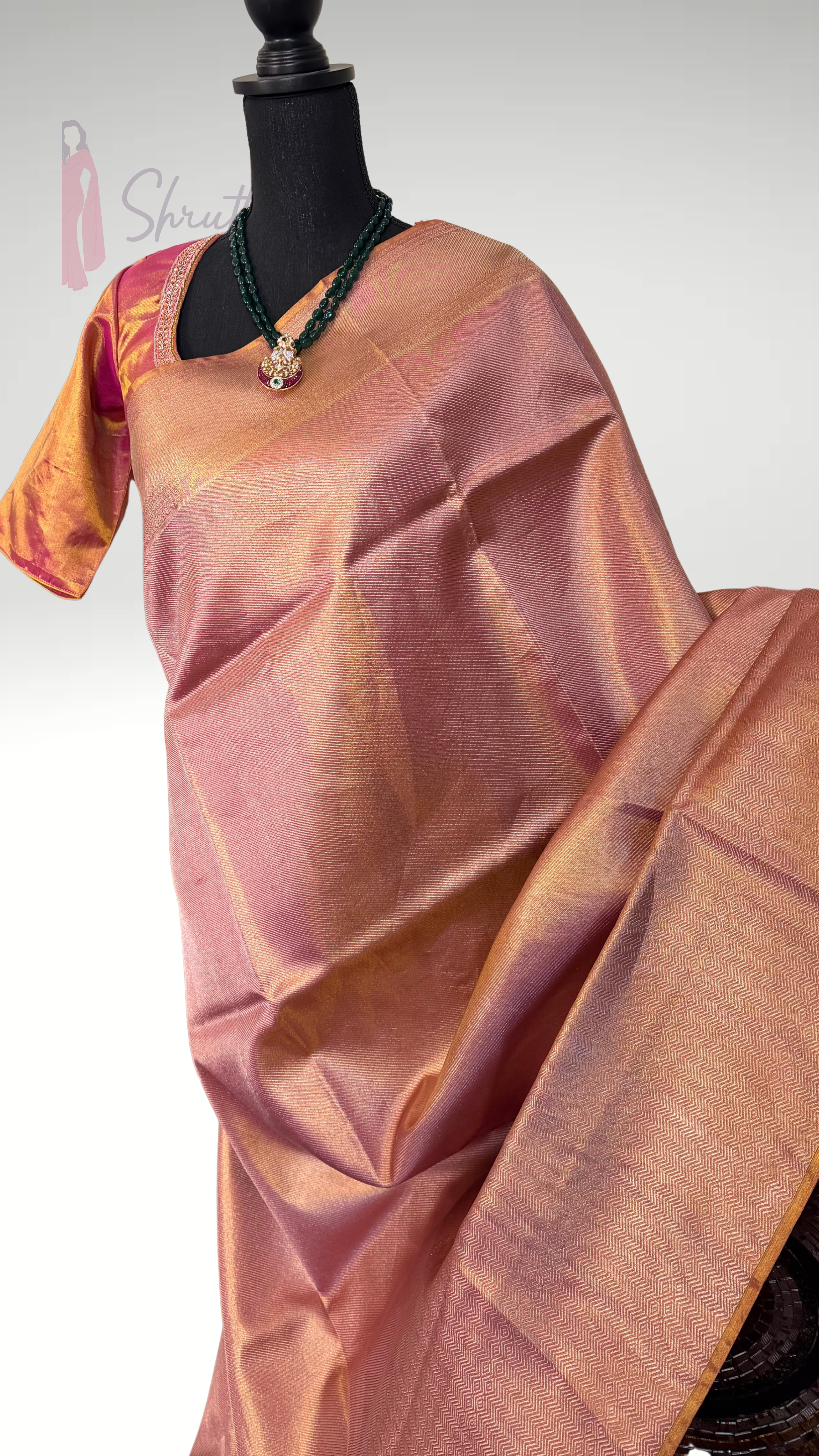 Pure kanjivaram silk saree saree - Rose Gold tissue.