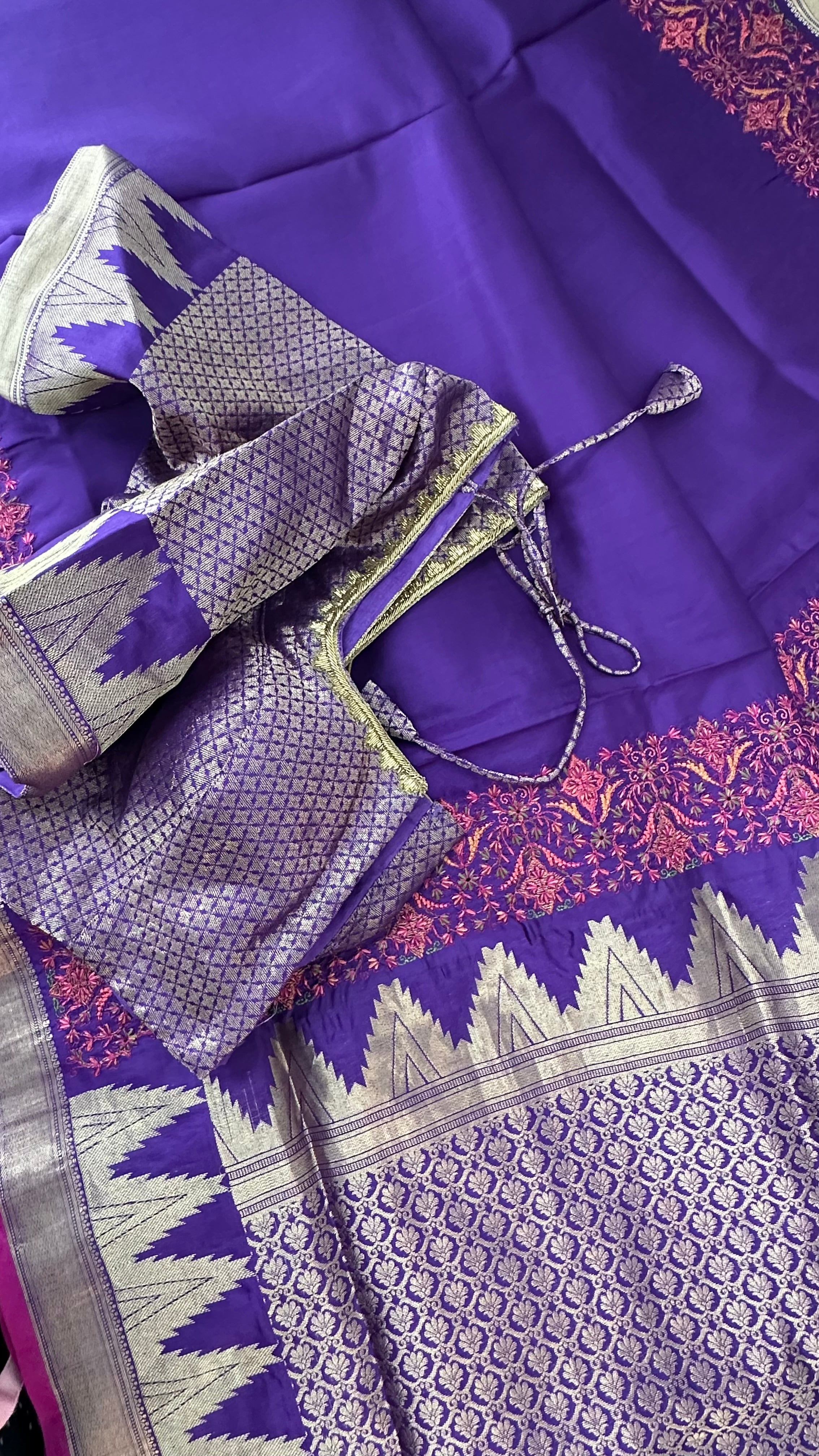 Saree with highest quality fabric zari, stitched blouses with hand embroidered designs( not all) . Well made blouses. Pico fall done Product ships free USPS priority mail.