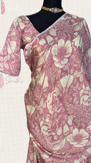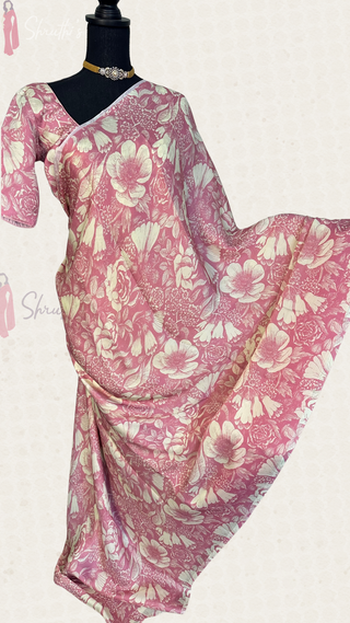 Pink Indian saree Linen saree partywear saree with blouse floral saree sari usa