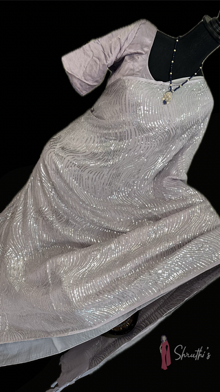 Pastel Pink Pure beneras linen silver zari pastel pink saree embroidered linen saree online usa