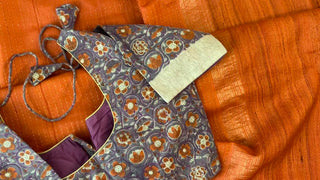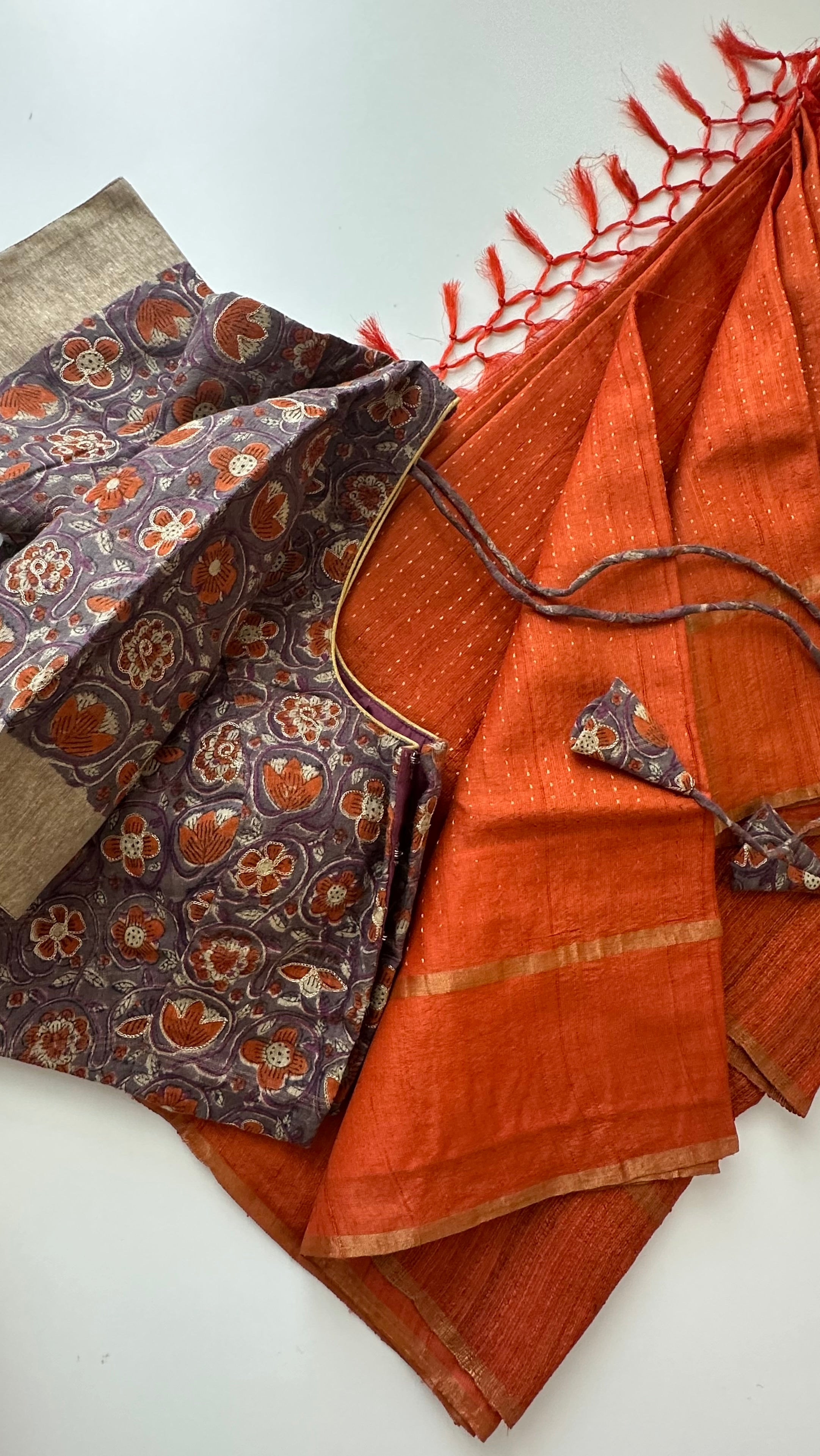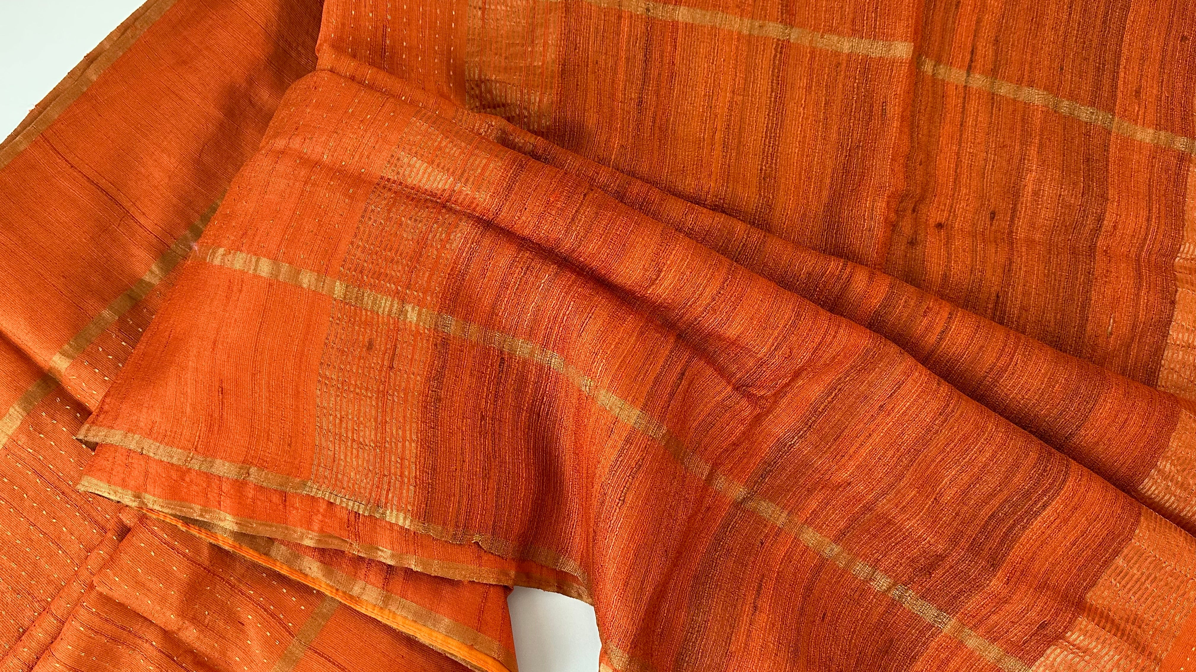 She is one of the finest Handloom Pure Orange silk saree Tussar saree with embroidery Stitched blouse