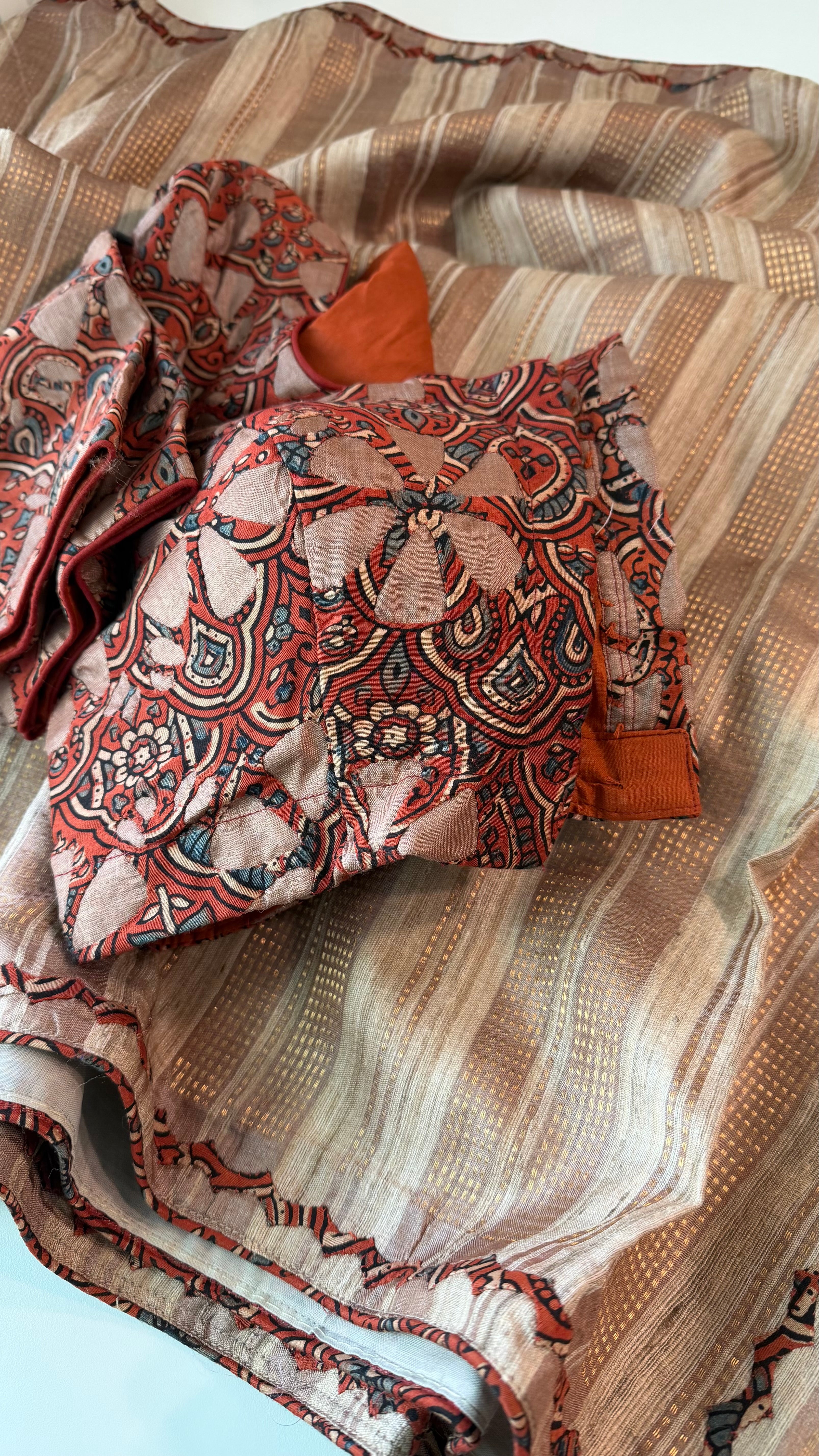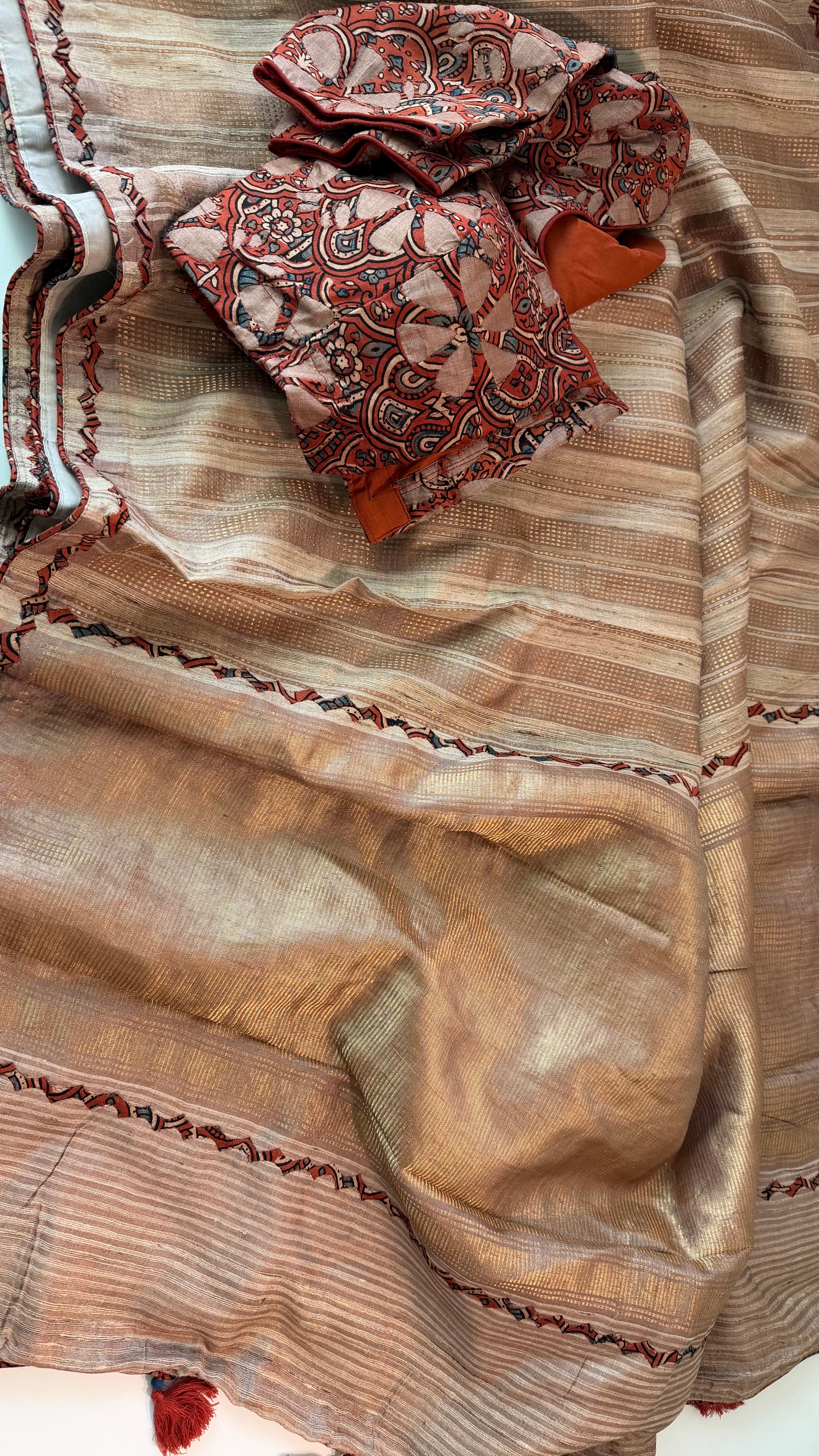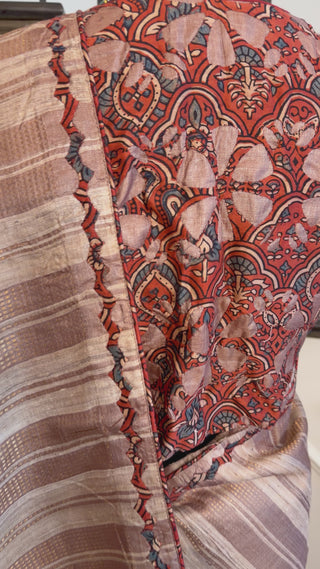 Pure Handloom Tussar silk saree with prestitched blouse online shopping