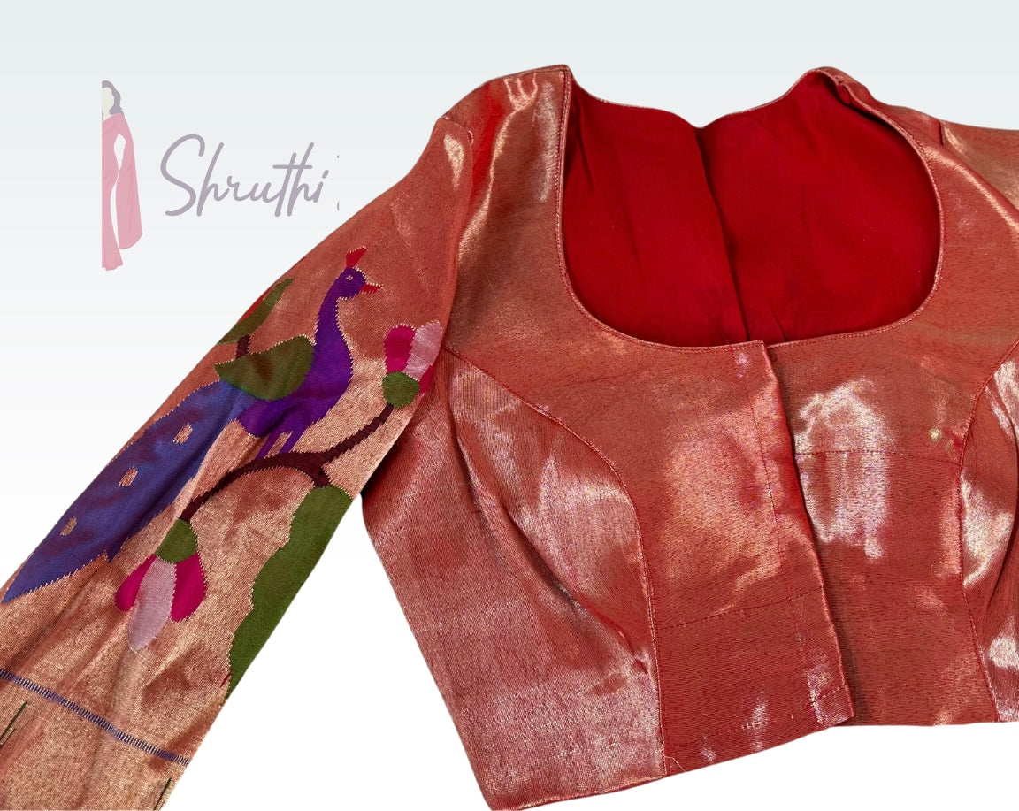 Paithani Gold tissue silk blouses ready to wear online shopping paithani blouse online