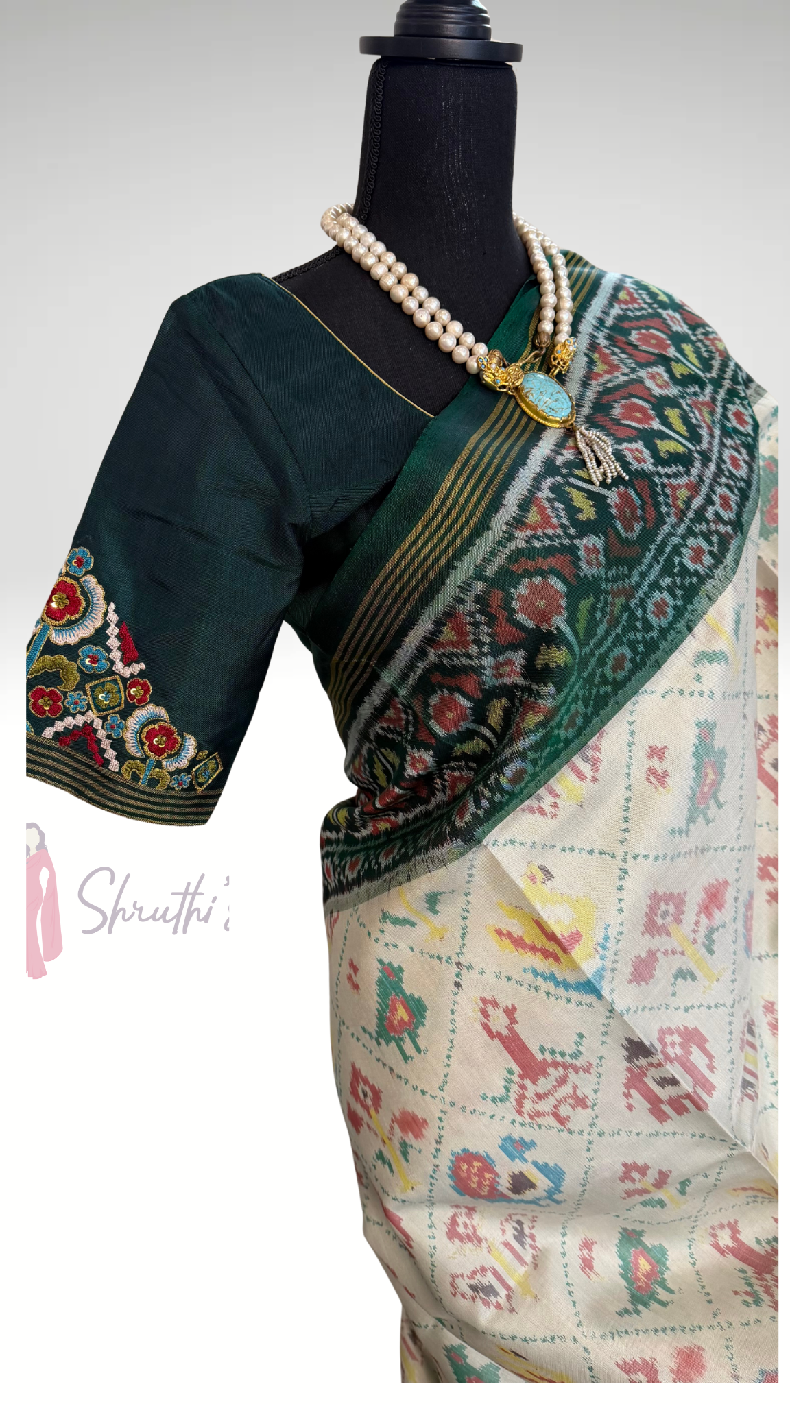 Pure Patan Patola saree pure silk weave  with stitched padded  silk blouse with Hand embroidered designs
