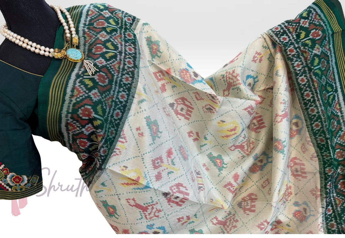 Pure Patan Patola saree green pattern saree Handloom mulberry silk saree paithani silk blouse high quality fine weave easy drape