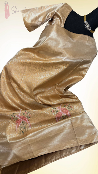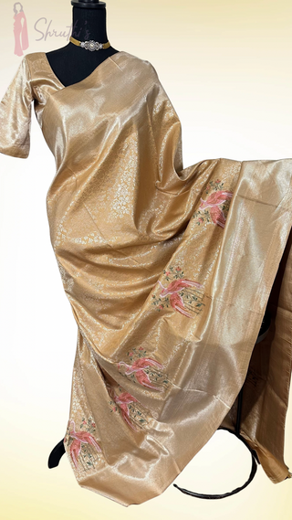 Pure Tissue Pink beneras organza saree stitched blouse saree readymade online USA
