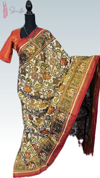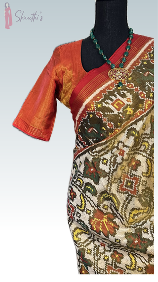 Beautiful Shades of Blue pure patola silk saree finish pallu with stitched blouse