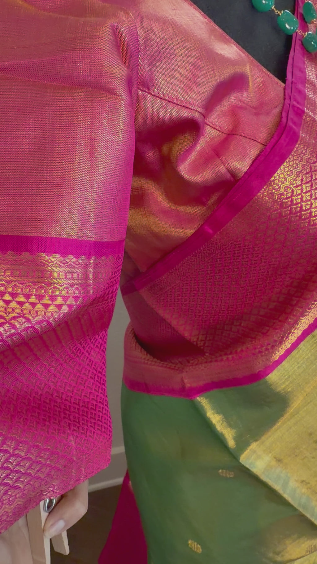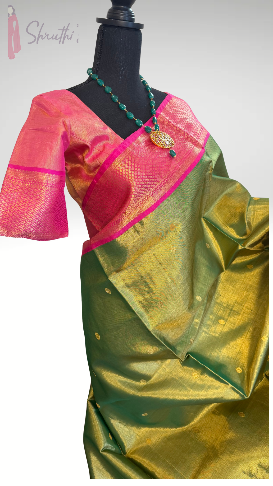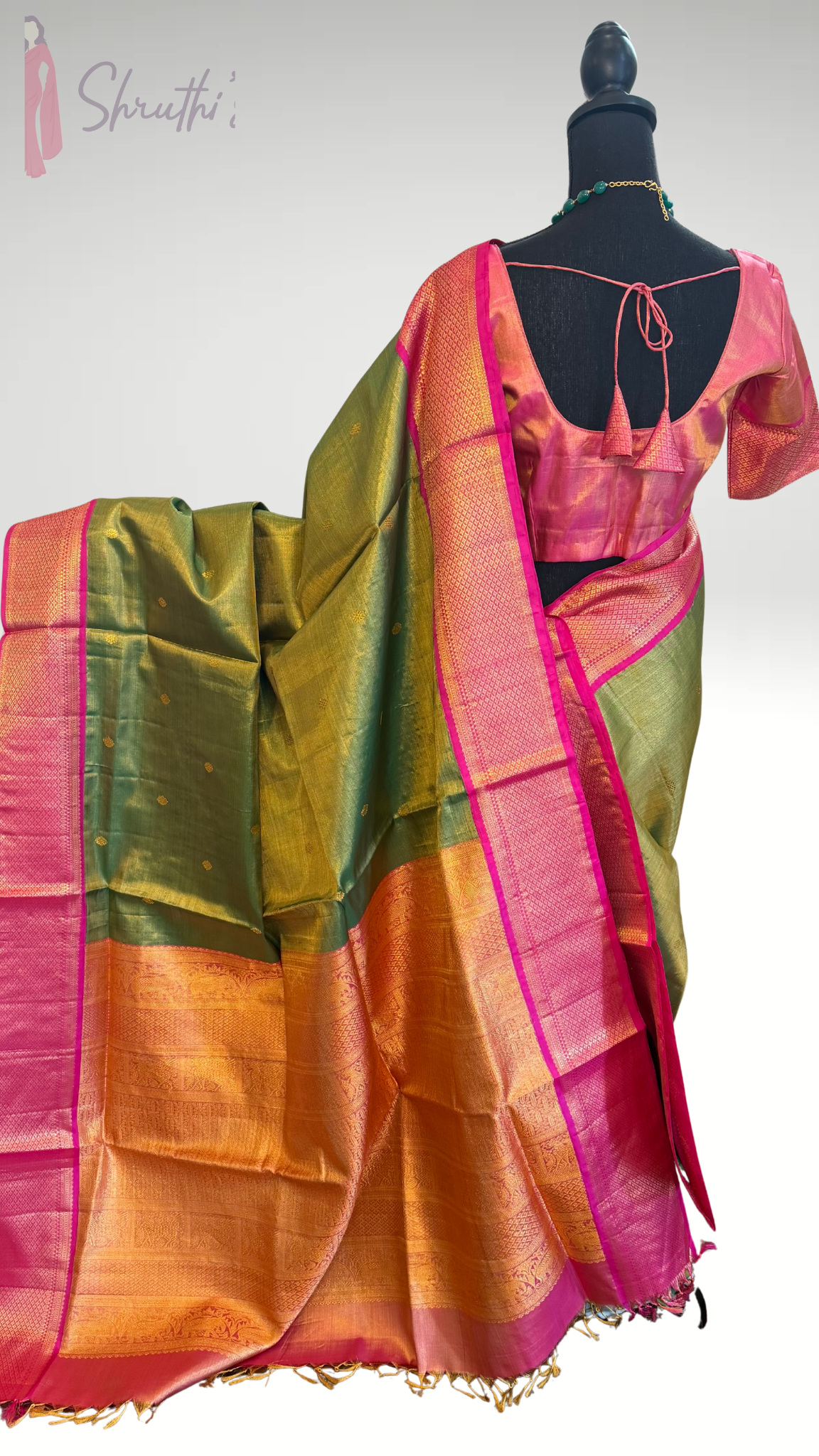 Color : Parrot green GOLD tissue kanchi