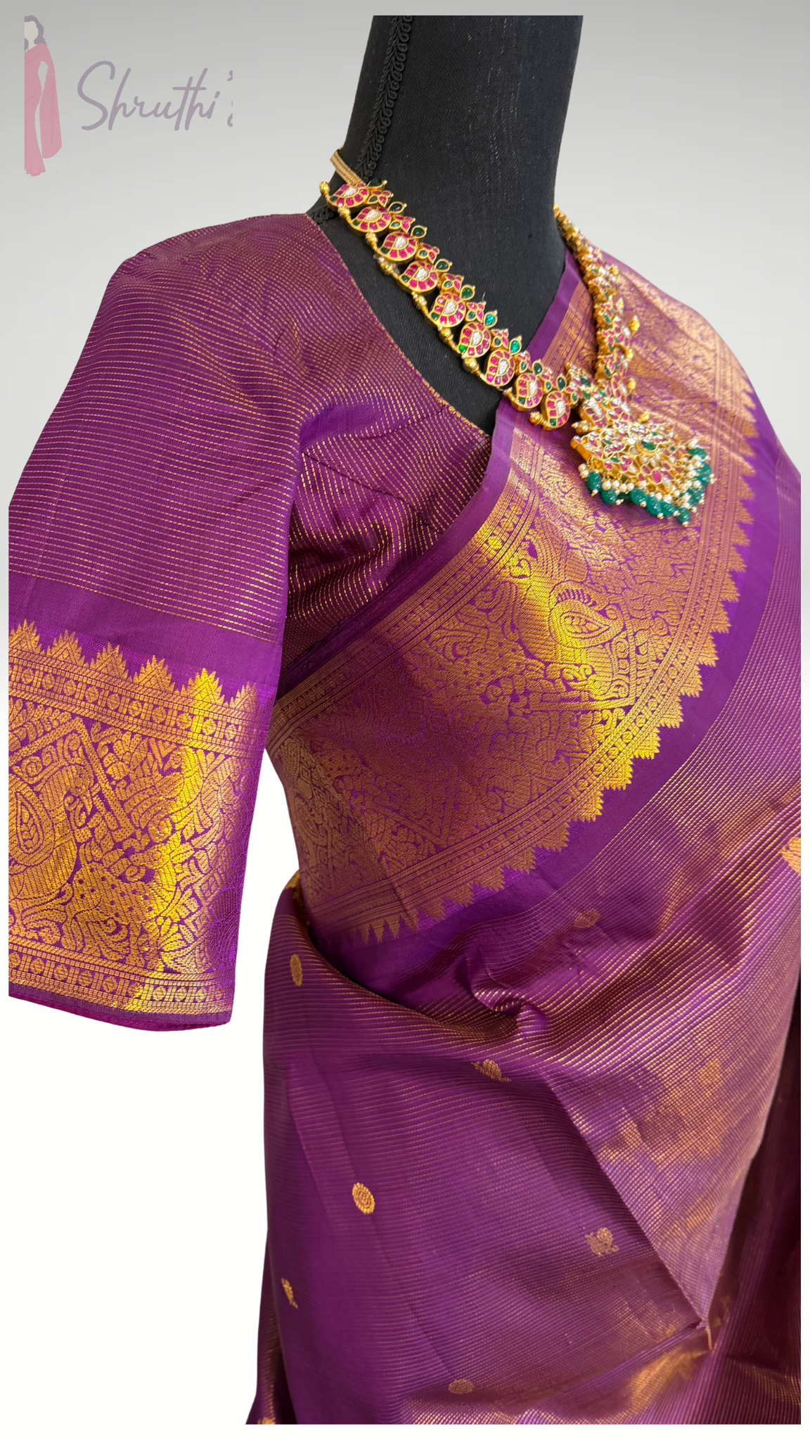 Handloom pure kanjivaram vairaoosi purple with high neck stitched blouse .