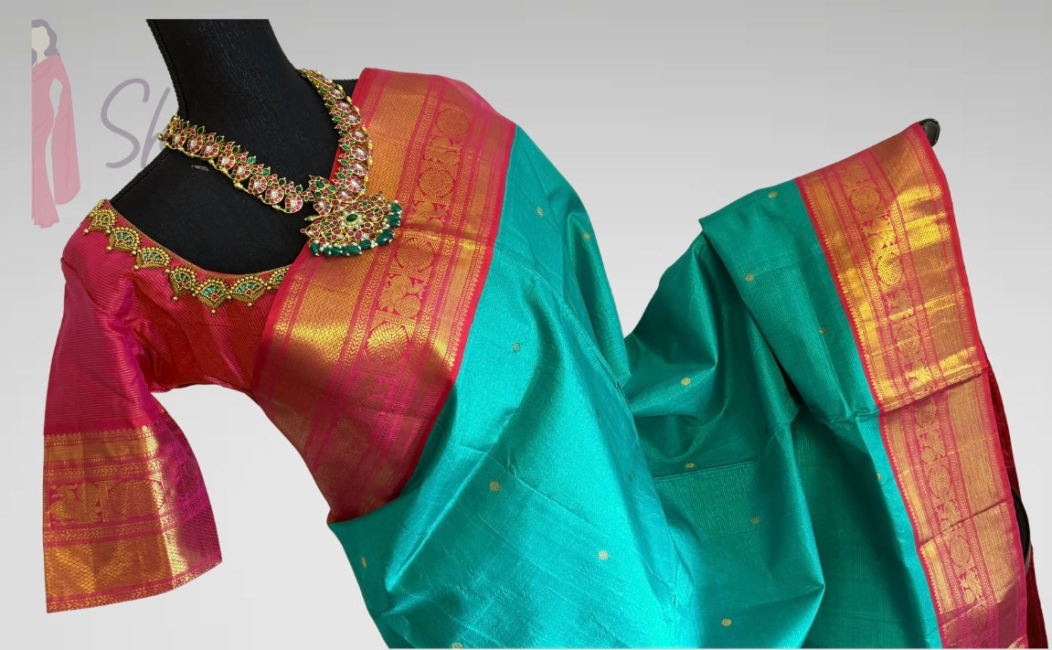 Shade of Teal pure kanchi vaira oosi kanchi pattu saree fine weave kanchi pattu bridal