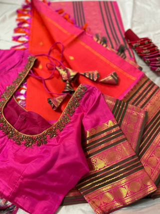 Black soft silk petite point Embroidery work saree kanjivaram with stitched blouse saree border