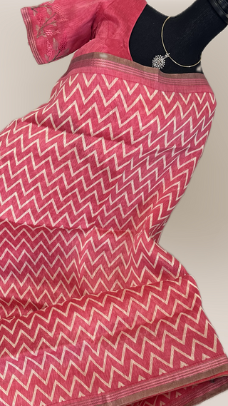 Pink Indian saree Linen saree partywear saree with blouse floral saree sari usa