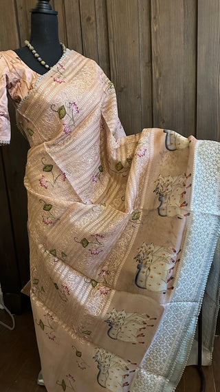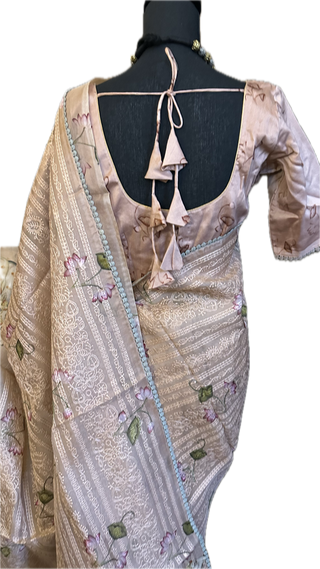 Pichwai Print Organza saree mauve with prestitched blouse- party wear Organza