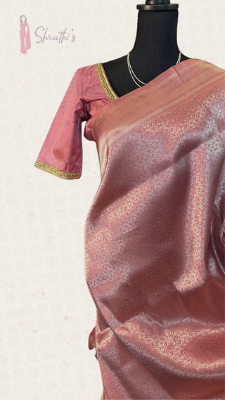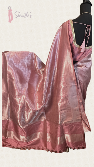 Pastel Pink pure silver zari soft silk saree zari and hand embroidered blouse