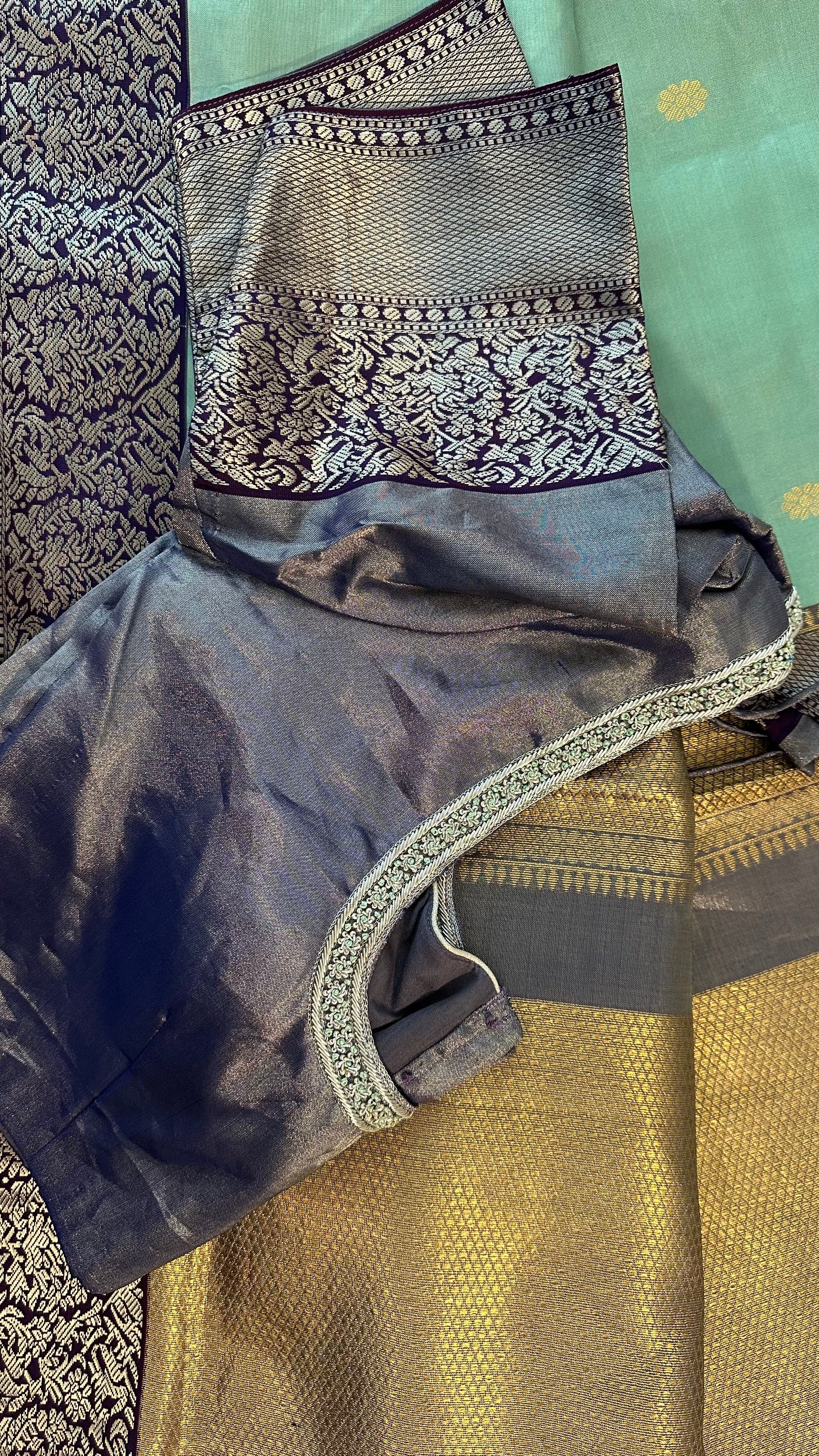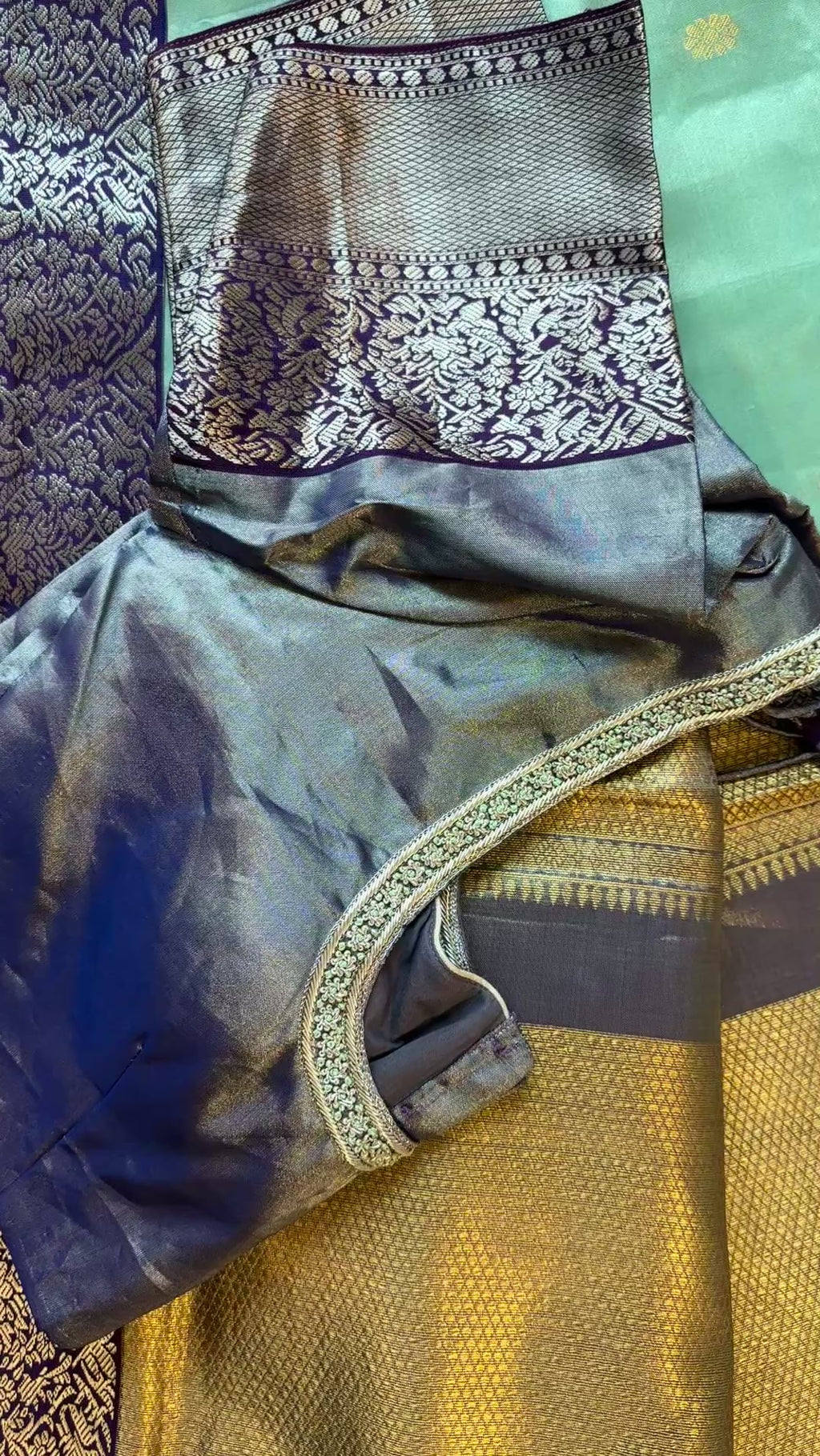 Comes with prestitched blouse size 36 goes up to 42 very beautiful high quality kanjivaram pure silk saree.
