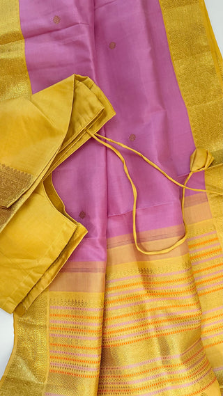 Venkatagiri pure double shade pink silk silver zari with stitched blouse contrast blouse