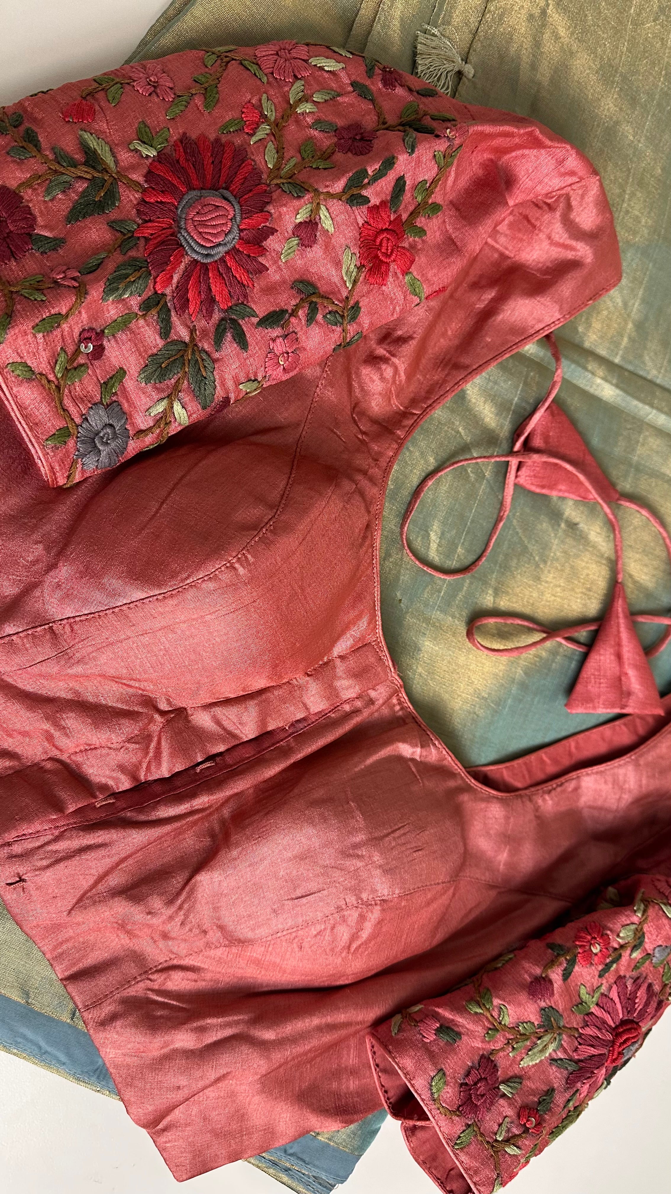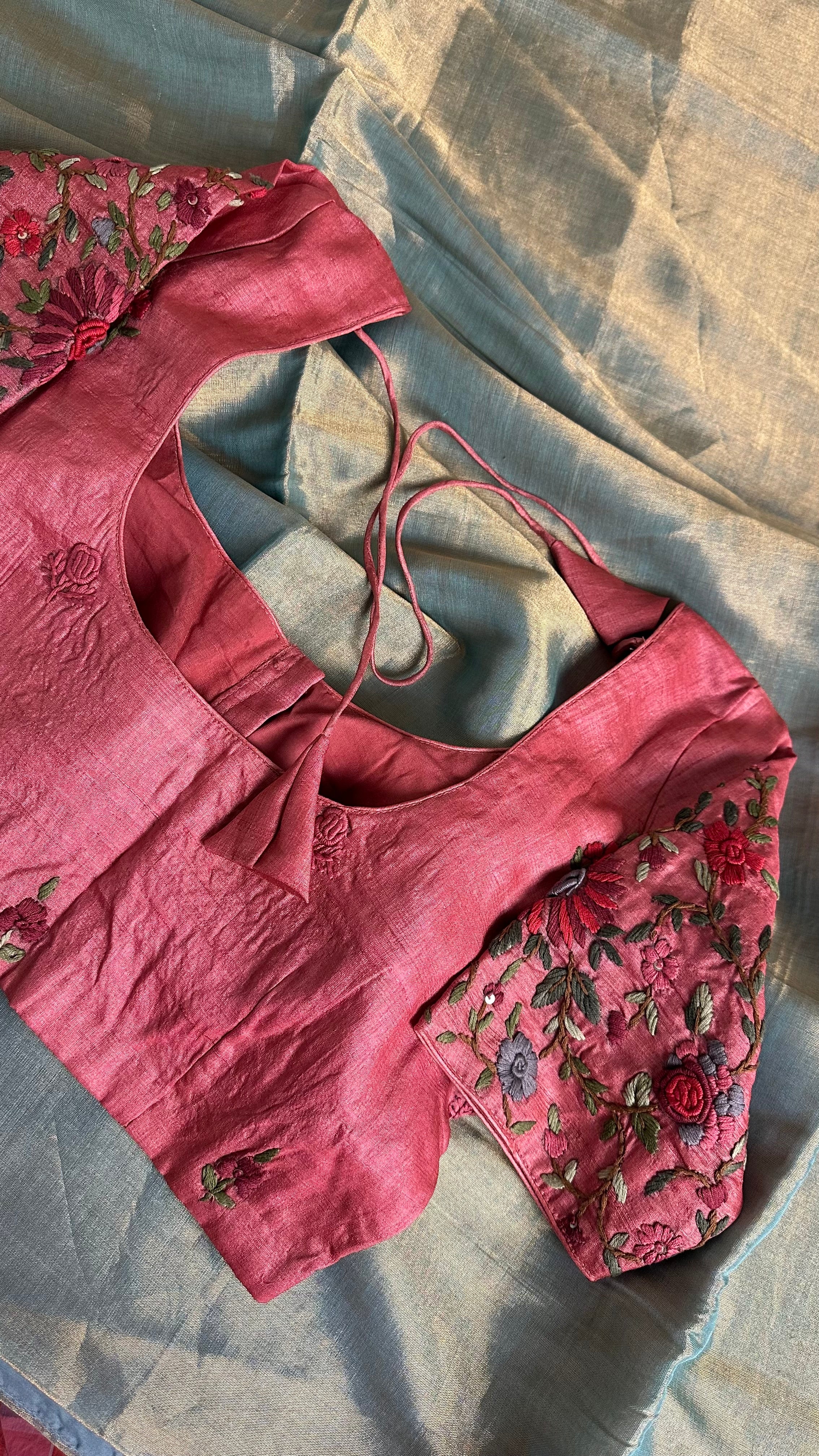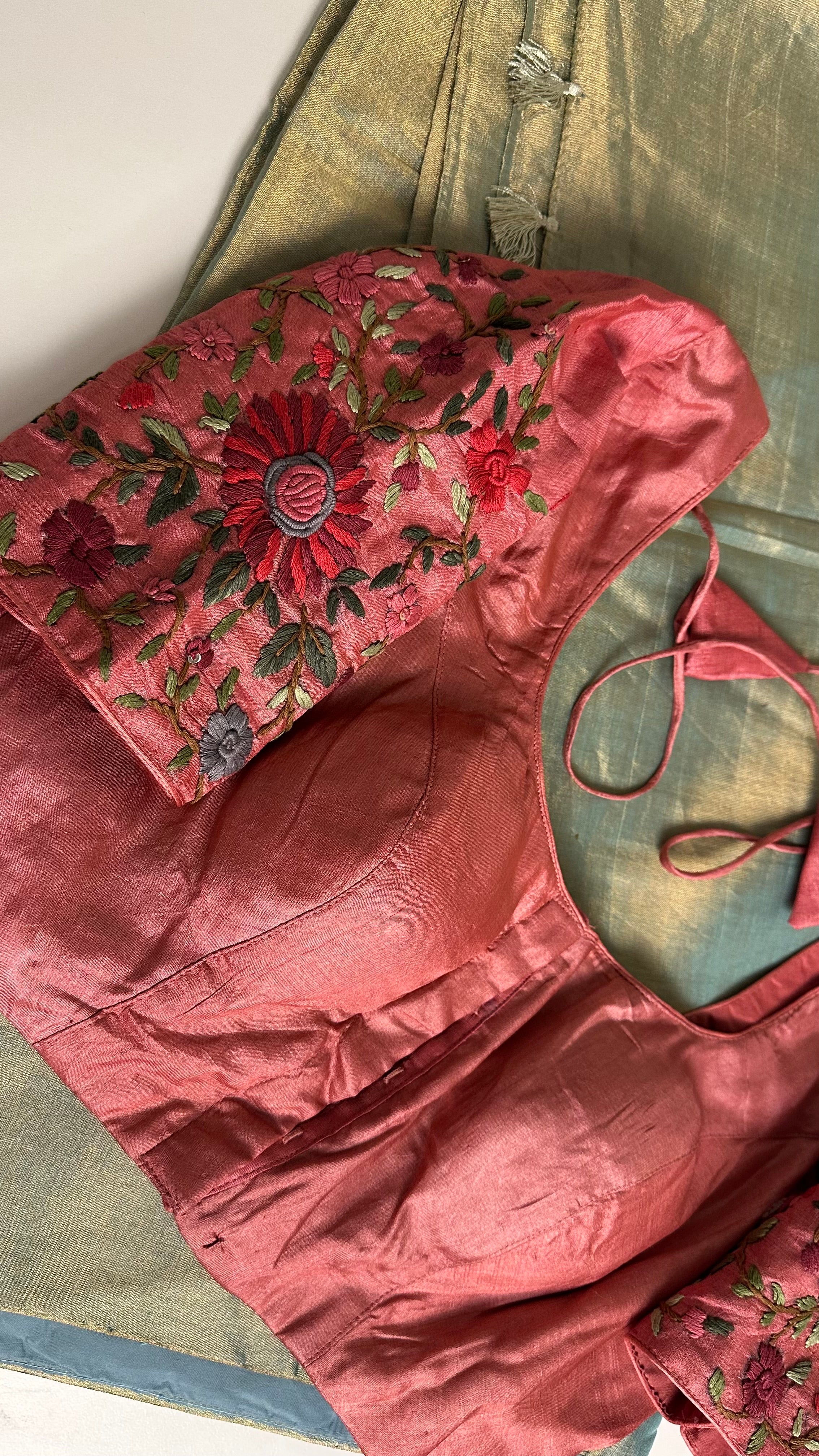 Tissue Handloom Chanderi tissue silk saree with pure Tussar silk embroidered silk blouse