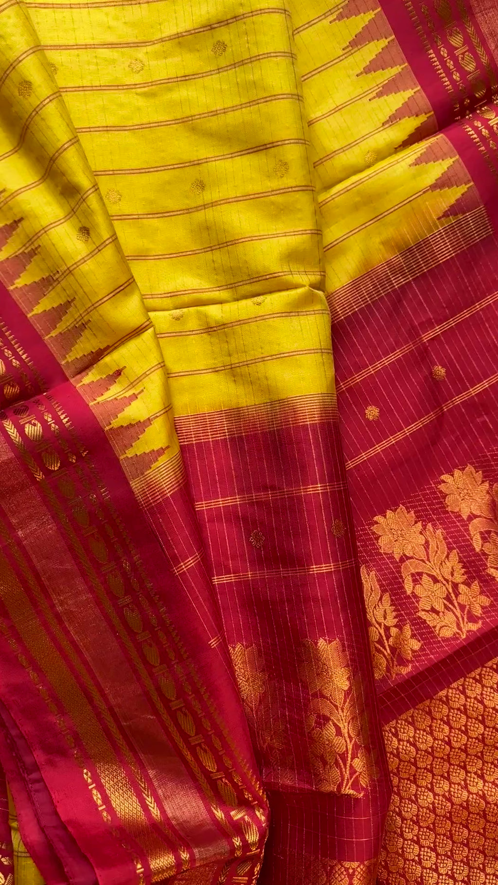 Yellow checks Gadwal handwoven silk saree with stitched blouse