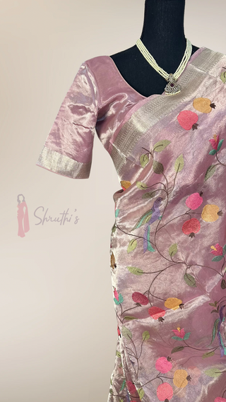 Tissue pinkish Chanderi tissue silk saree with pure paithani tissue silk blouse