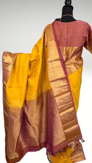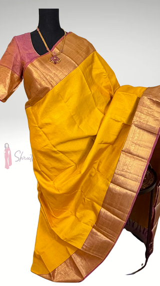 Mustard Yellow Pure Kanjivaram Handloom pure silk Muhurtam Wedding Saree with ready to wear ship Blouse Online USA