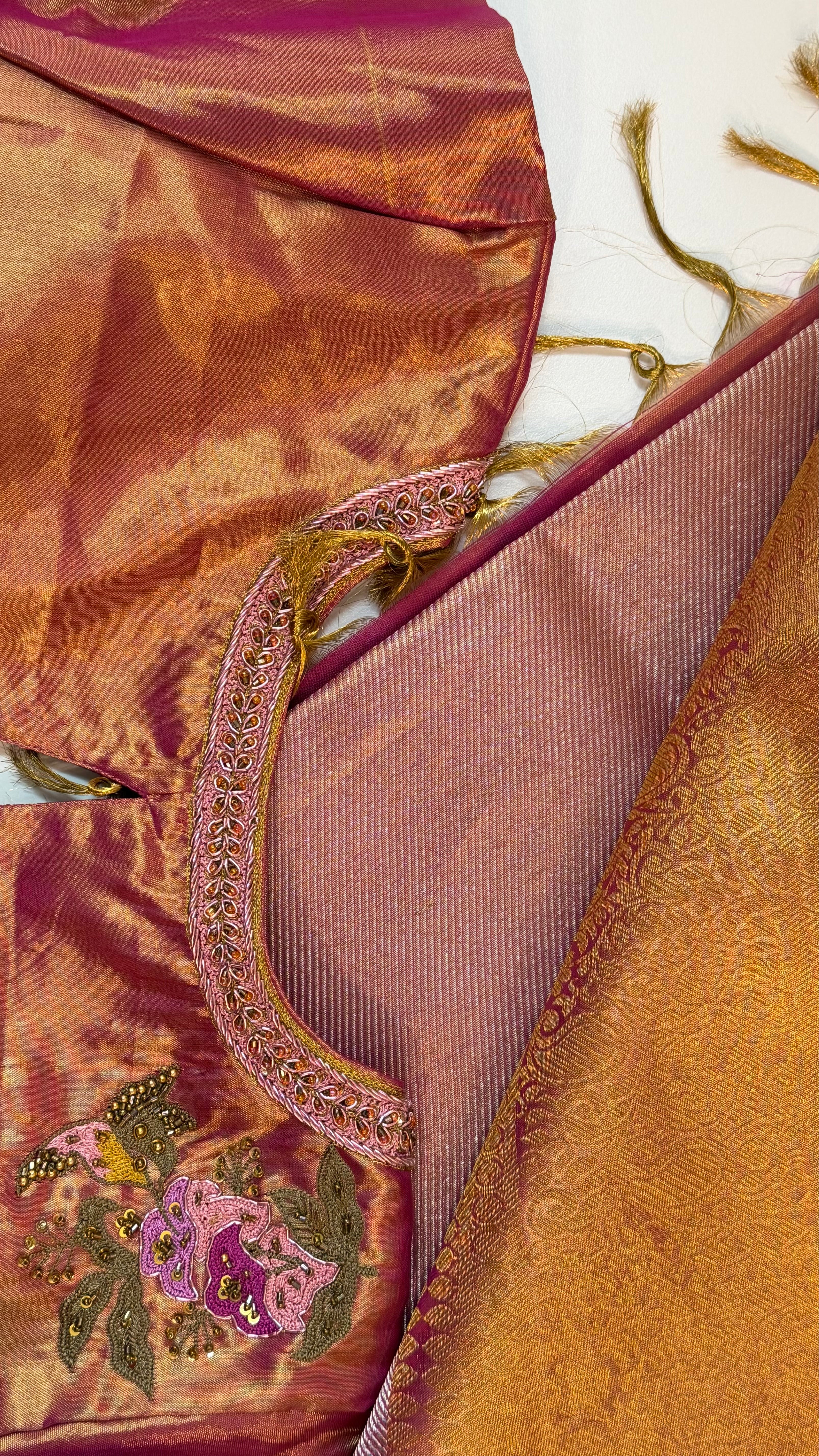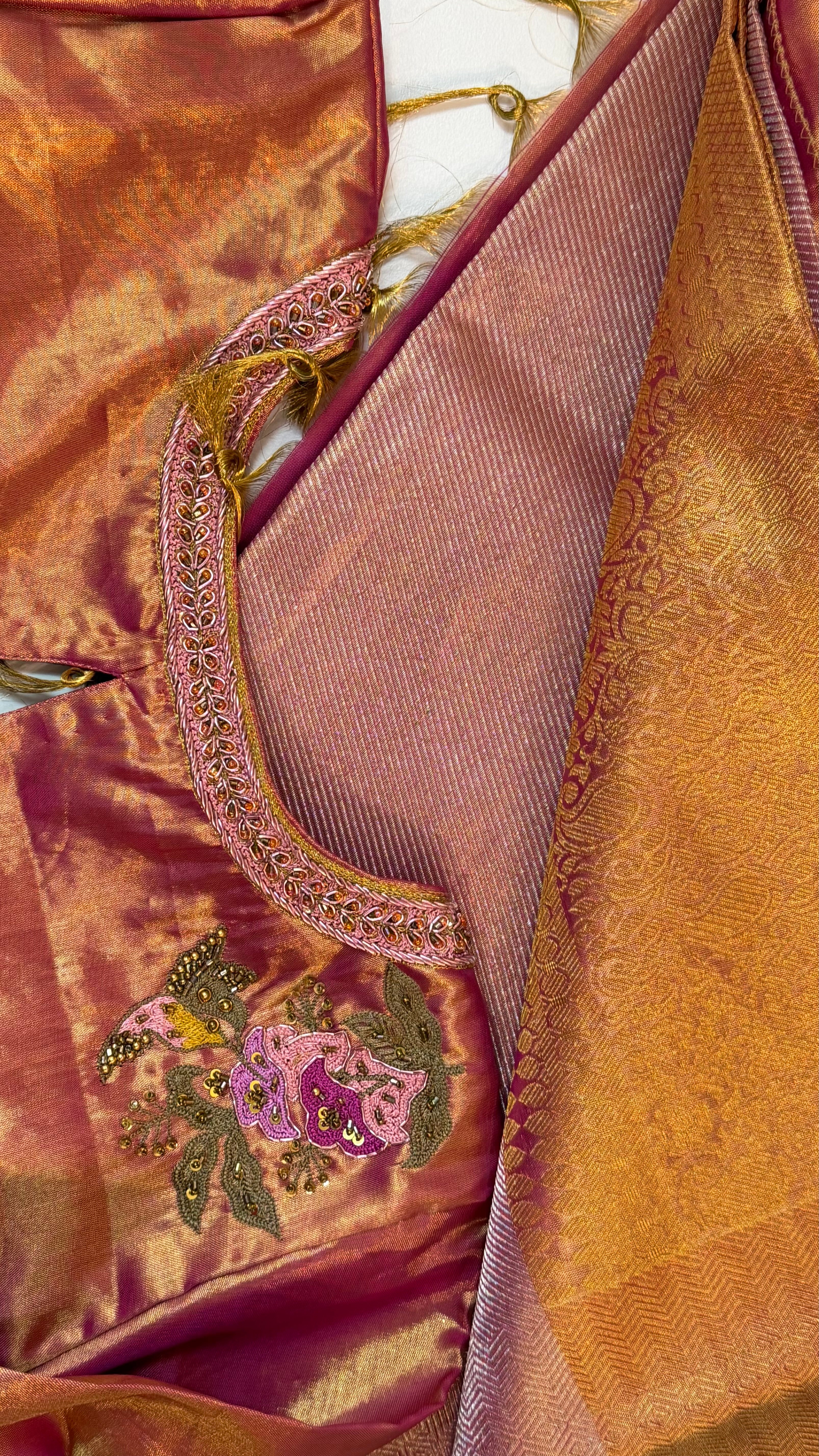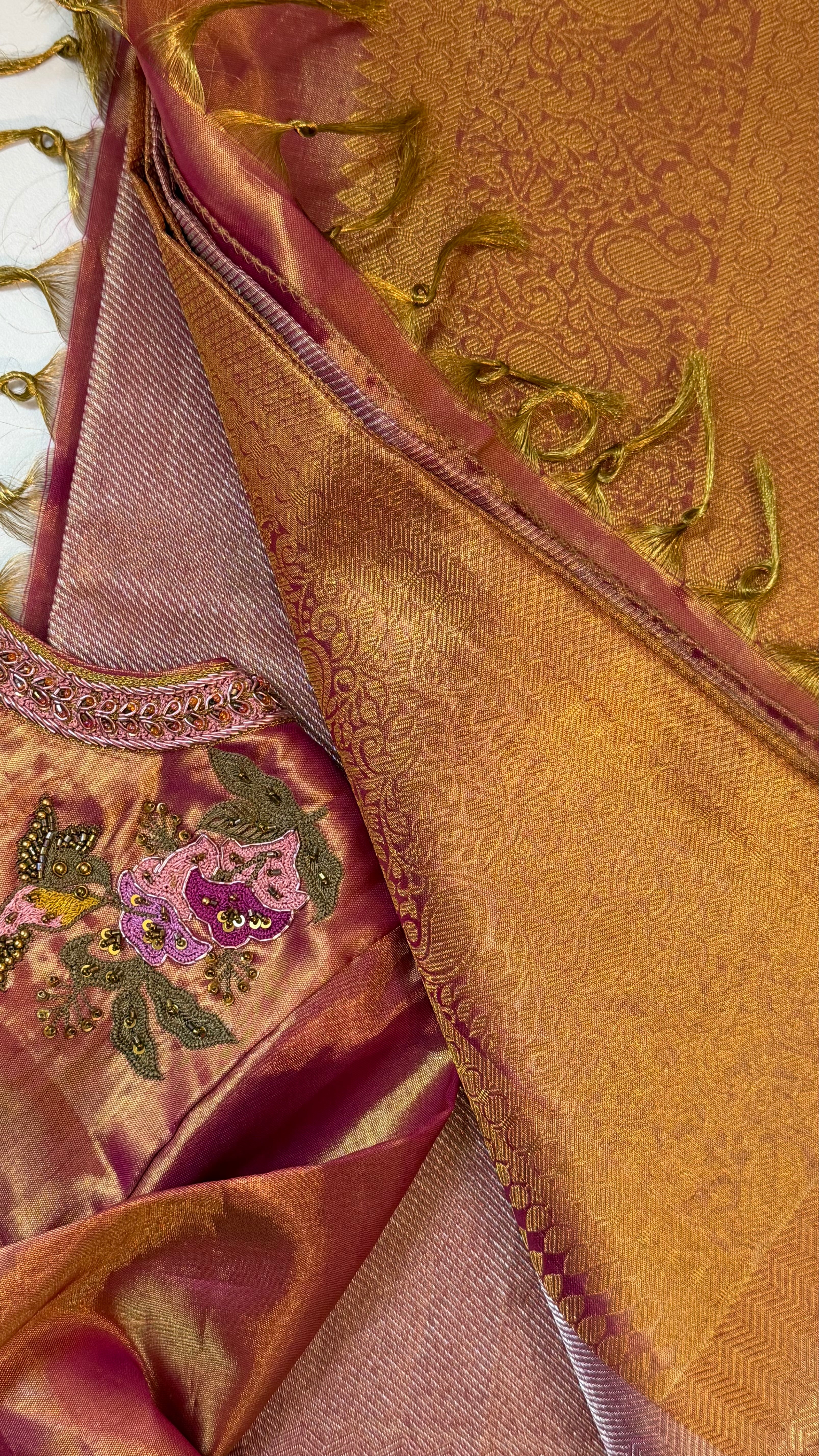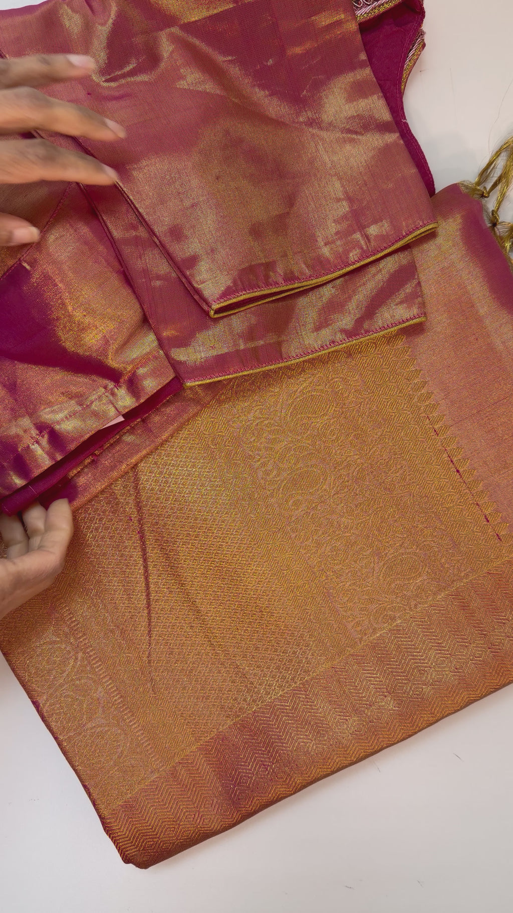 Pure kanjivaram silk saree saree - Rose Gold tissue.