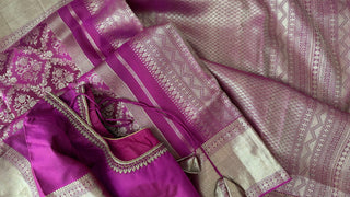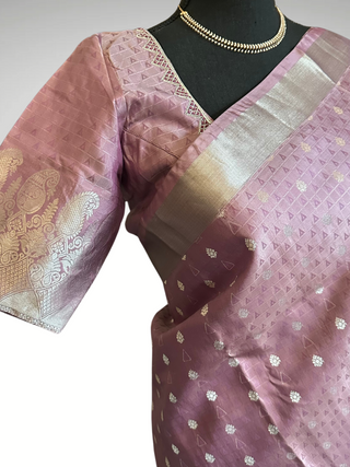 Benerasi Mauve Pure Pastel Katan silk saree online shopping with prestitched blouse