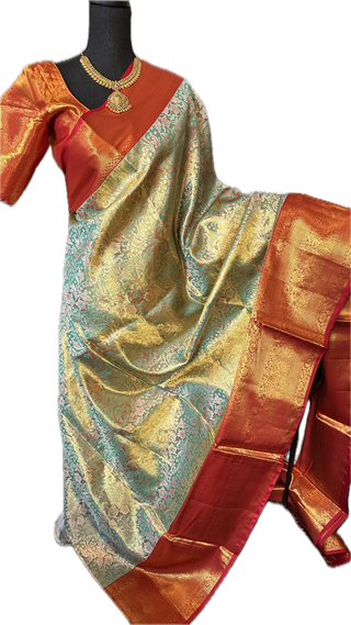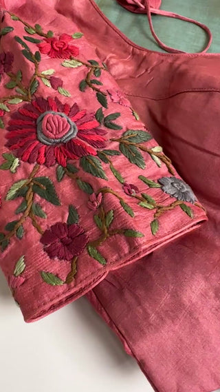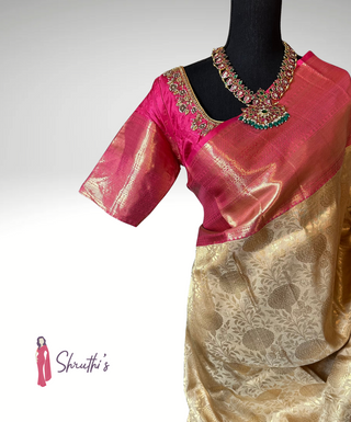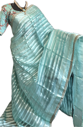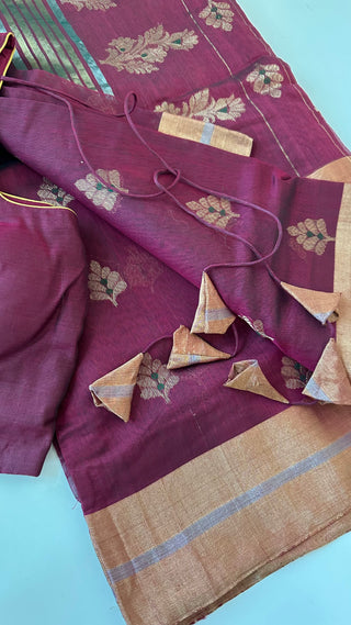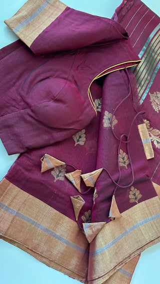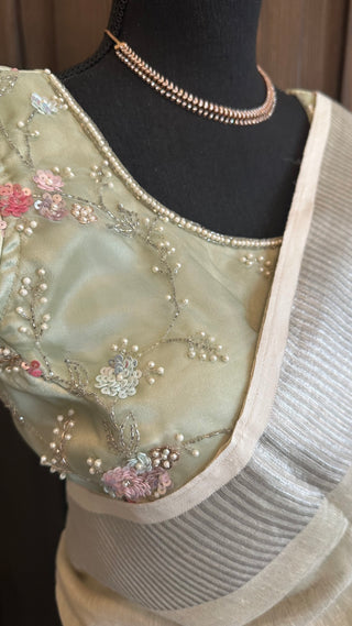 Tissue Handloom Chanderi tissue silk saree with pure Tussar silk embroidered silk blouse