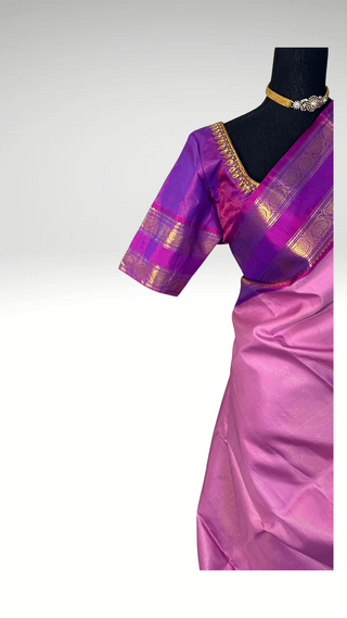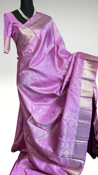 Brocade kanjivaram pastel lavender gold zari with stitched blouse traditional kanchi pattusaree saree Indian wedding