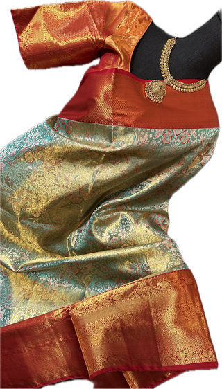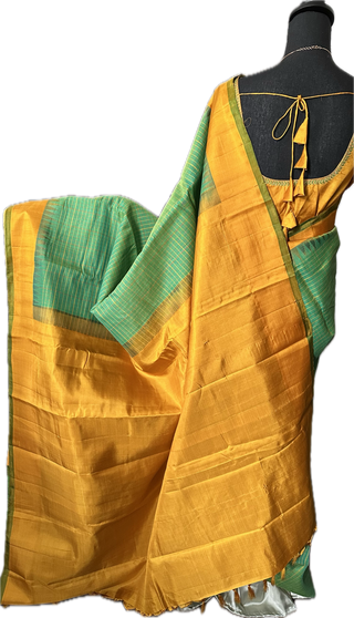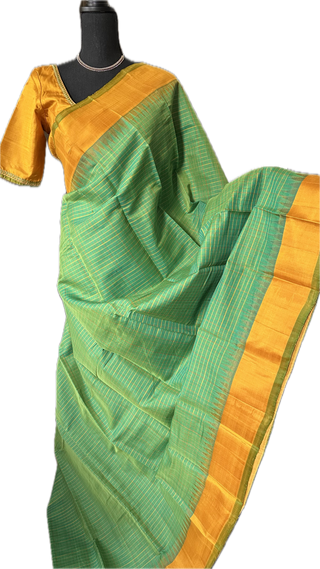 Gadwal handwoven silk cototn body saree with embroidered stitched blouse