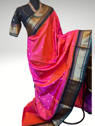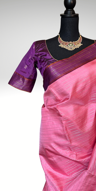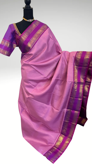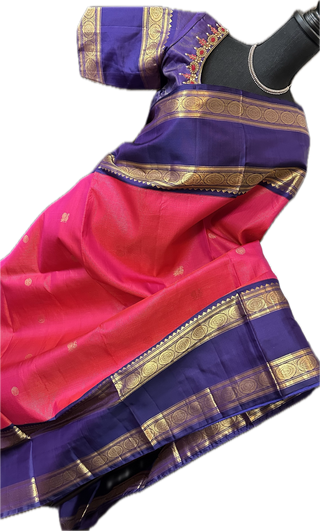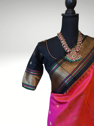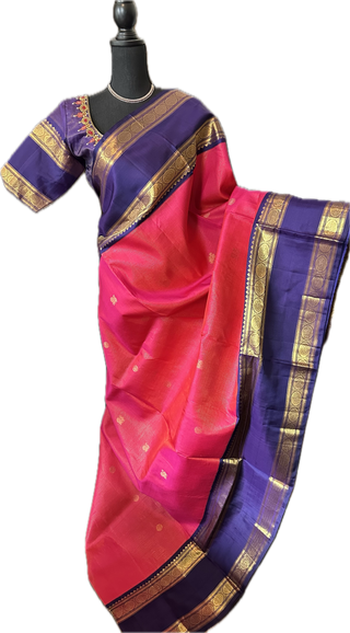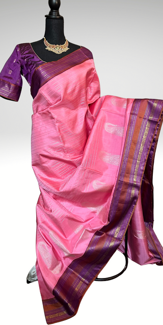 Pink dual shade color Gadwal handwoven silk saree with stitched blouse online