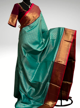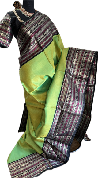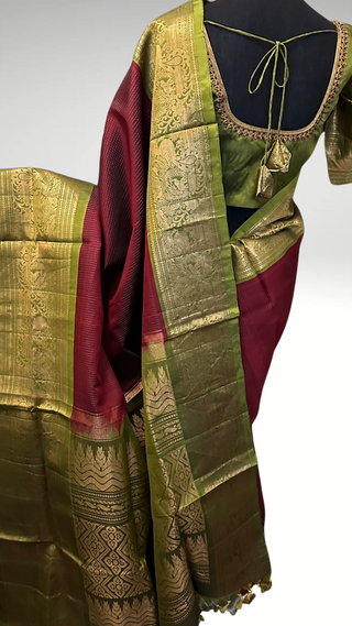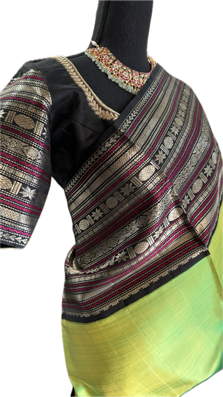 Betalnut Leaf Green Gadwal handwoven silk saree with embroidered stitched blouse