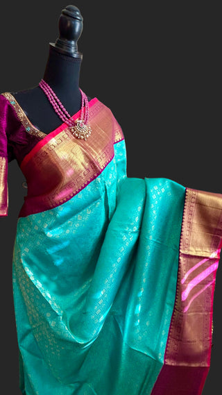 Shades of Beautiful Blue vaira oosi kanchi pattu saree fine weave kanchi pattu bridal