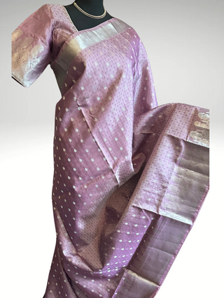 Mauve silver kanchi pure zari kanchi pattu saree fine weave kanchi pattu bridal