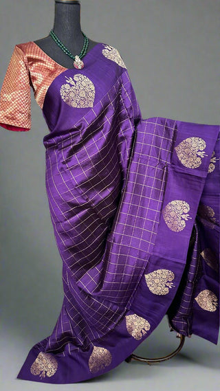 Benerasi Purple Katan silk saree online shopping with prestitched blouse